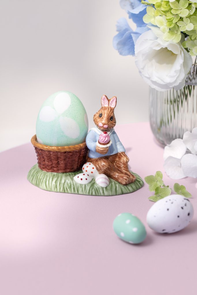 Porcelánový veľkonočný stojanček na vajíčko Villeroy & Boch z výročnej kolekcie Annual Easter Edition zaujme roztomilým motívom zajačika Maxa s košíkom a jemnými veľkonočnými detailmi. Originálny tvar a precízne spracovanie z neho robia krásnu dekoráciu aj štýlový doplnok sviatočného stola.