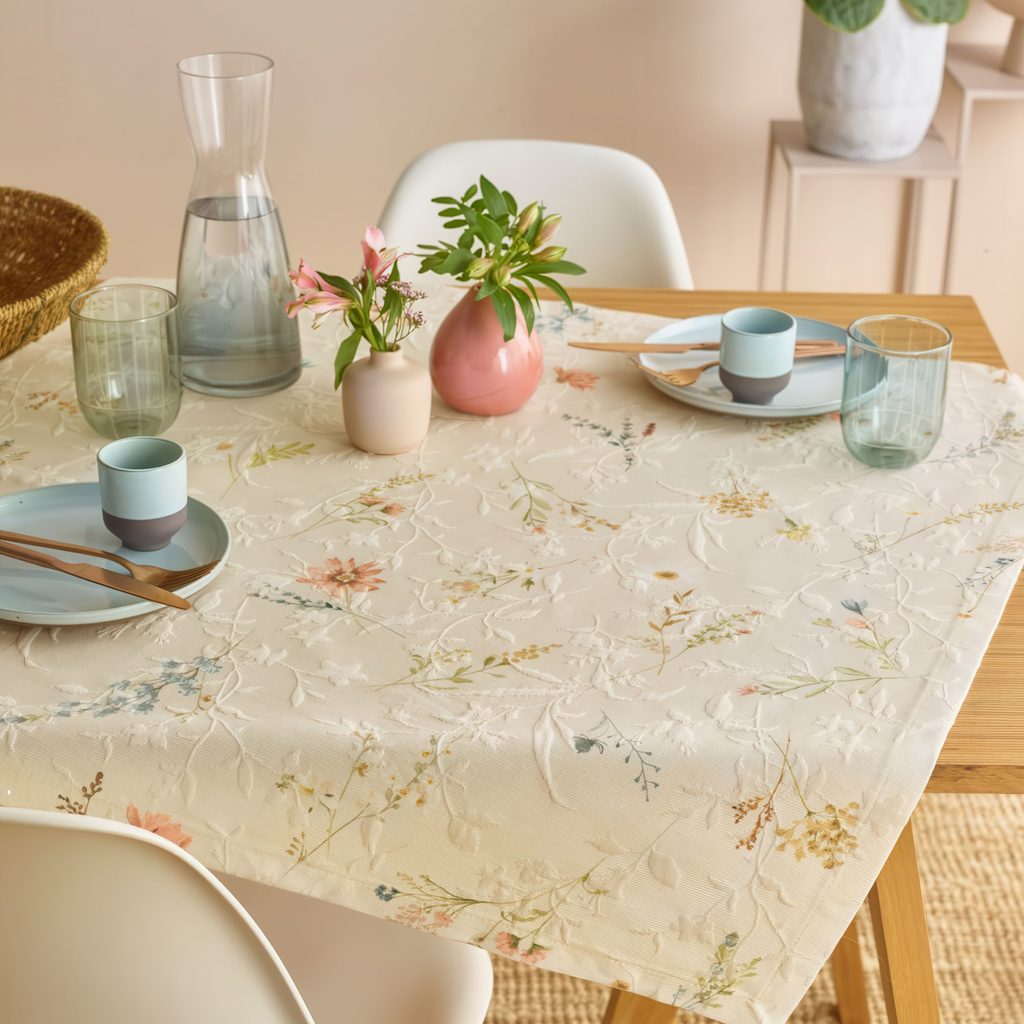 Behúň na stôl z kolekcie Flam od nemeckej značky Sander table+home vdýchne vášmu domovu jarnú sviežosť. Jemné kvety v pastelových tónoch, digitálna tlač na matelassej tkanine a 100% bavlna zaručujú elegantný vzhľad aj kvalitu spracovania.