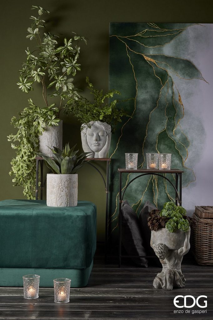 Spojte dizajn, emócie a jedinečnosť s touto originálnou betónovou vázou v tvare ženskej hlavy od talianskej značky EDG - Enzo De Gasperi. Vďaka väčším rozmerom 24x21 cm sa stane dominantným prvkom interiéru, ktorý zaujme na prvý pohľad. Jemne prepracované črty tváre, zatvorené oči a výraz hlbokého pokoja navodia pocit harmónie a nadčasovej elegancie.