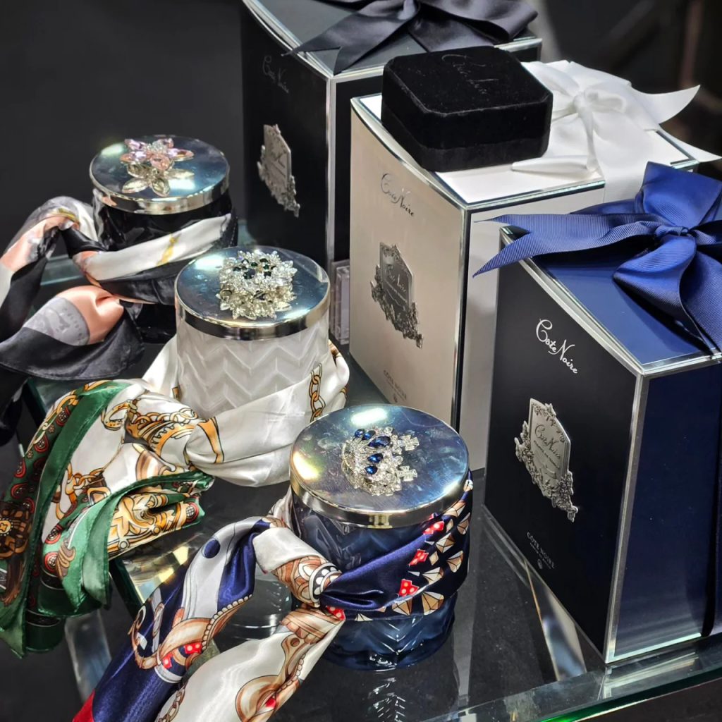 Limitovaná edícia sviečky Herringbone Côte Noire Black & Silver so šatkou horí až 100 hodín v dekoratívnej bielej nádobe so striebornými prvkami a magnetickou brošňou, čo z nej robí dokonalý exkluzívny darček a štýlový interiérový doplnok. Očarí vôňou Belle Epoque - krémovou vôňou kombinujúcou zelené kvety a čerstvé bylinky s tónmi pačuli a kvetov.