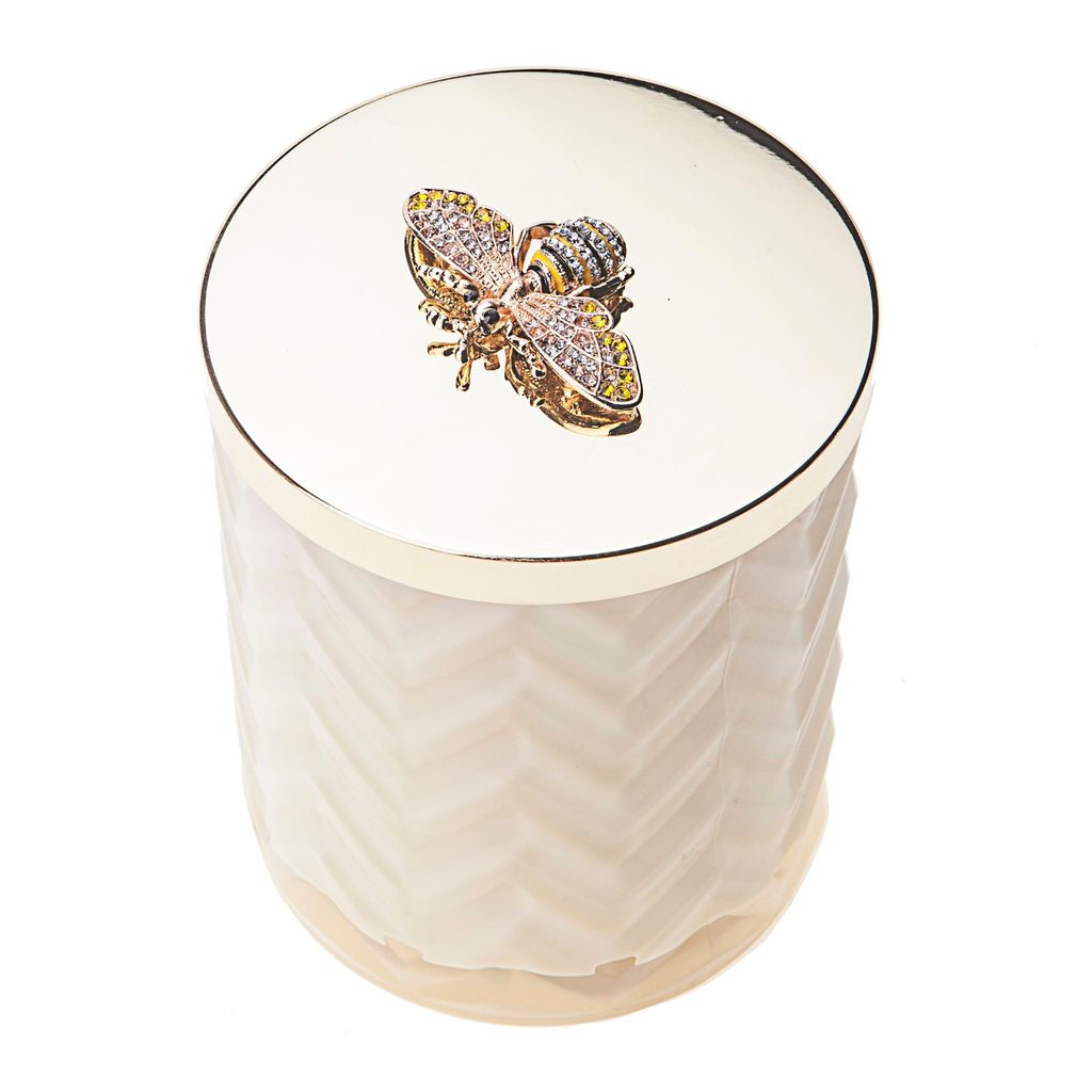 Limitovaná Herringbone sviečka Côte Noire Cream & Gold s šatkou horí až 100 hodín av dekoratívnom krémovom pohári so zlatými prvkami a magnetickou brošňou je dokonalým exkluzívnym darčekom aj štýlovým doplnkom interiéru. Hrejivá vôňa jazmínu, kokosu, cédrového dreva a tahitskej vanilky naplní váš domov zmyselnou eleganciou.