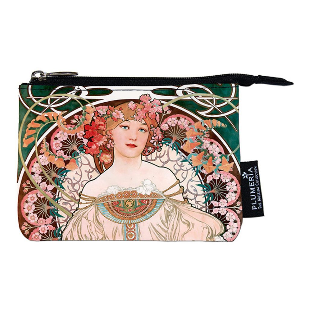 Štýlová peňaženka na mince s motívom Reverie od Alfonsa Muchu. Praktická veľkosť, zips na bezpečné uzavretie, ideálna do kabelky a na cesty.