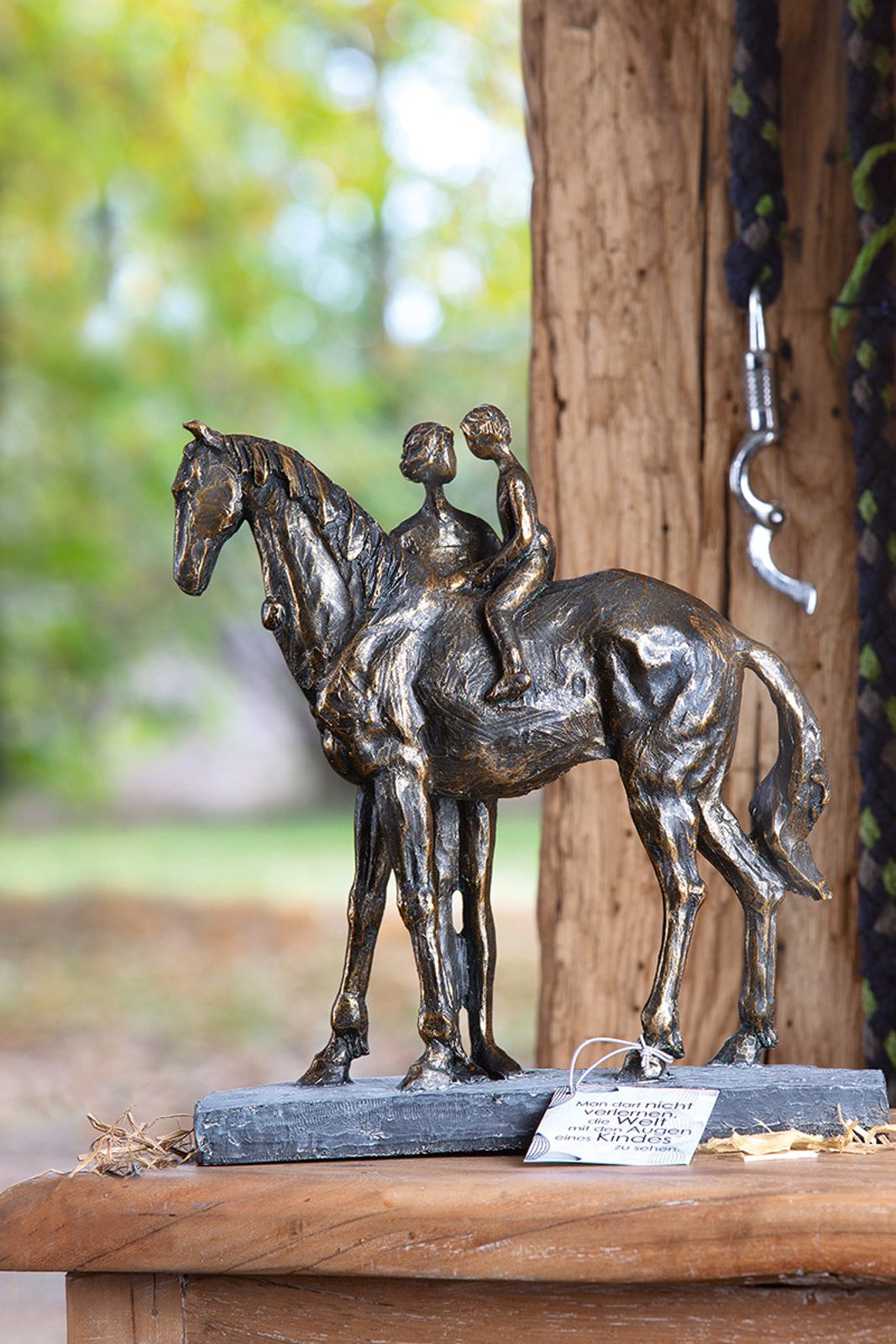 Exkluzívne dekorácie kone s chlapcom a ženou v hnědozlatém prevedení. Úžasná dekorácia na polici pre všetkých milovníkov koní. Dekorácia kone s chlapcom a ženou je výnimočná svojím vzhľadom napodobňujúci ťažký kov. Venujte túto dekorácie svojim blízkym alebo vyplňte prázdne miesto vo vašom interiéri.