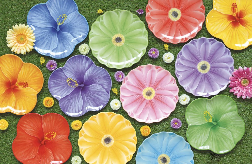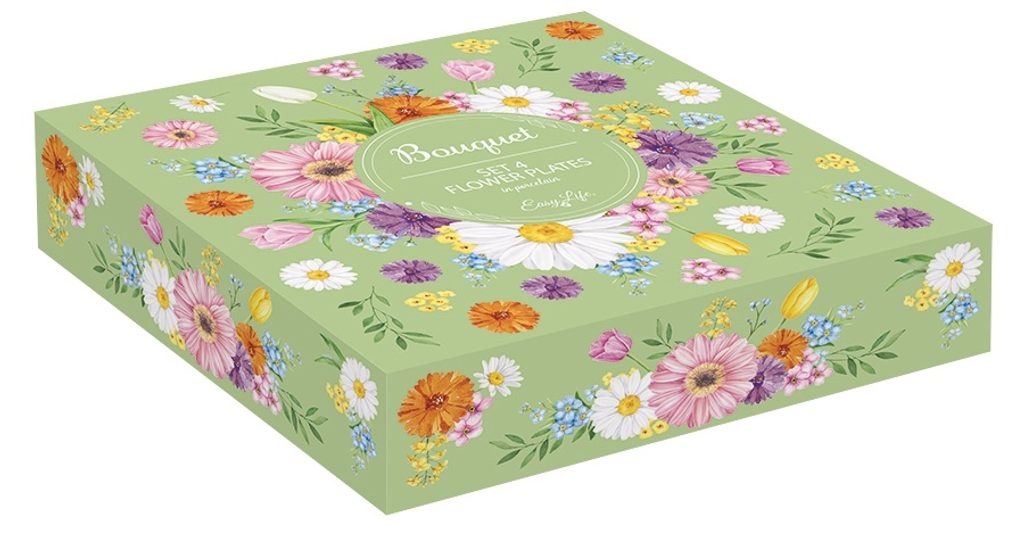 Jarní sada talířů ibišek pastelové 4ks Bouquet 21 cm, Easy Life