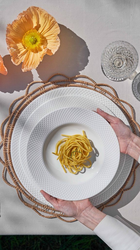 Elegantný tanier s priemerom 27 cm z kolekcie Richiamo talianskej značky La Porcellana Bianca. Tento porcelánový tanier s jemným bodkovaným vzorom prináša štýl a kvalitu do vášho stolovania. Možno umývať v umývačke riadu a v mikrovlnnej rúre.