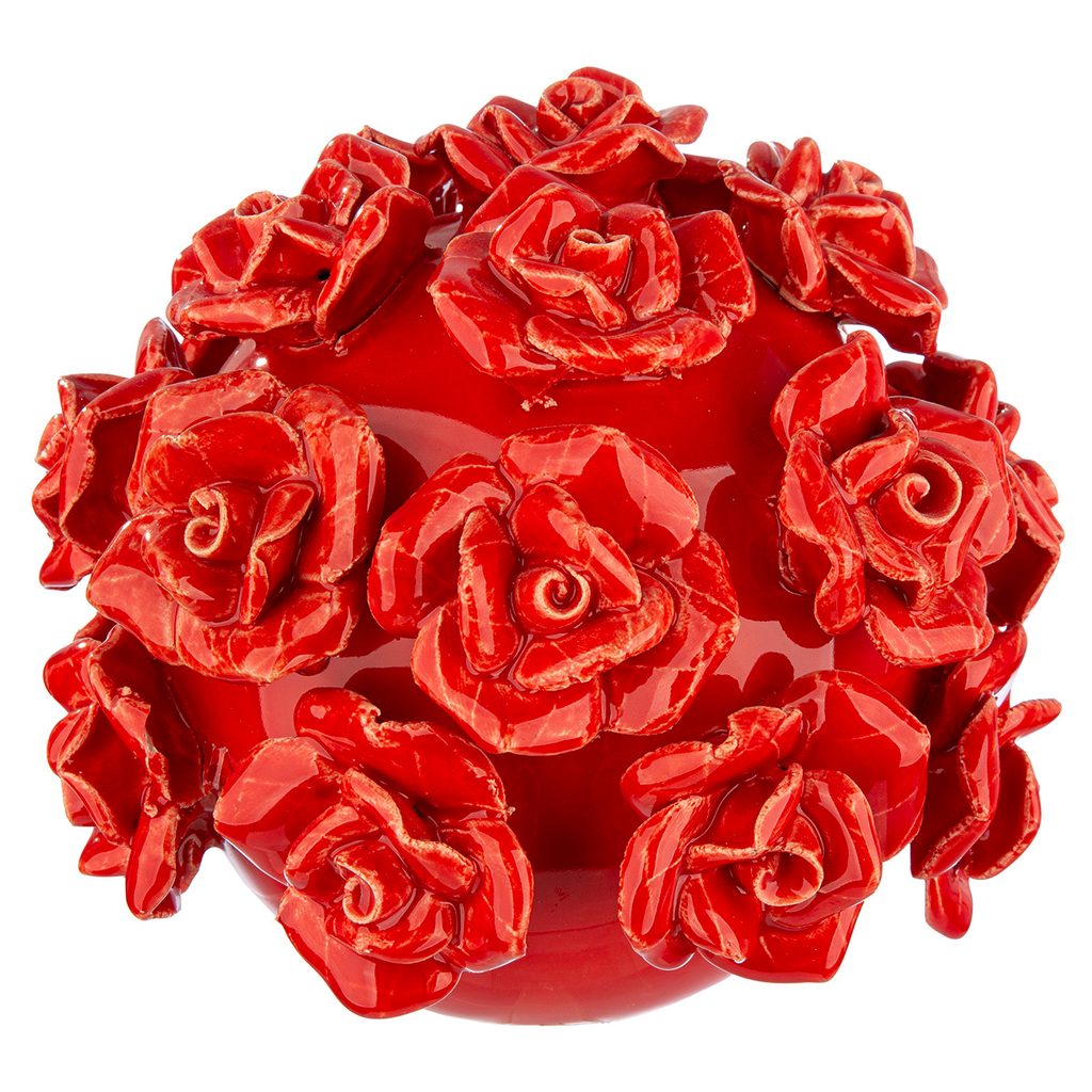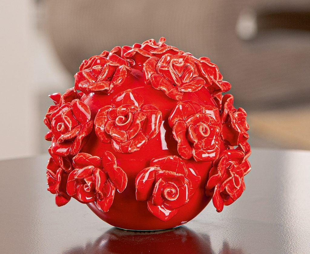Keramická dekorace koule s růžemi červená, 13,5 x 12 cm
