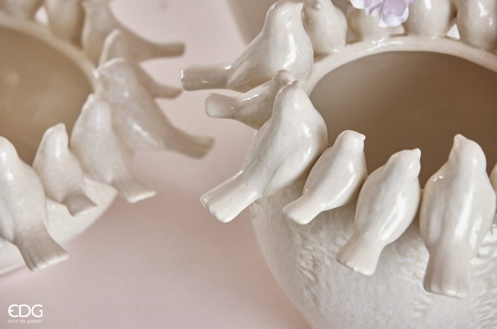 Keramická váza s holubičkami Dove krémová, 15x38 cm