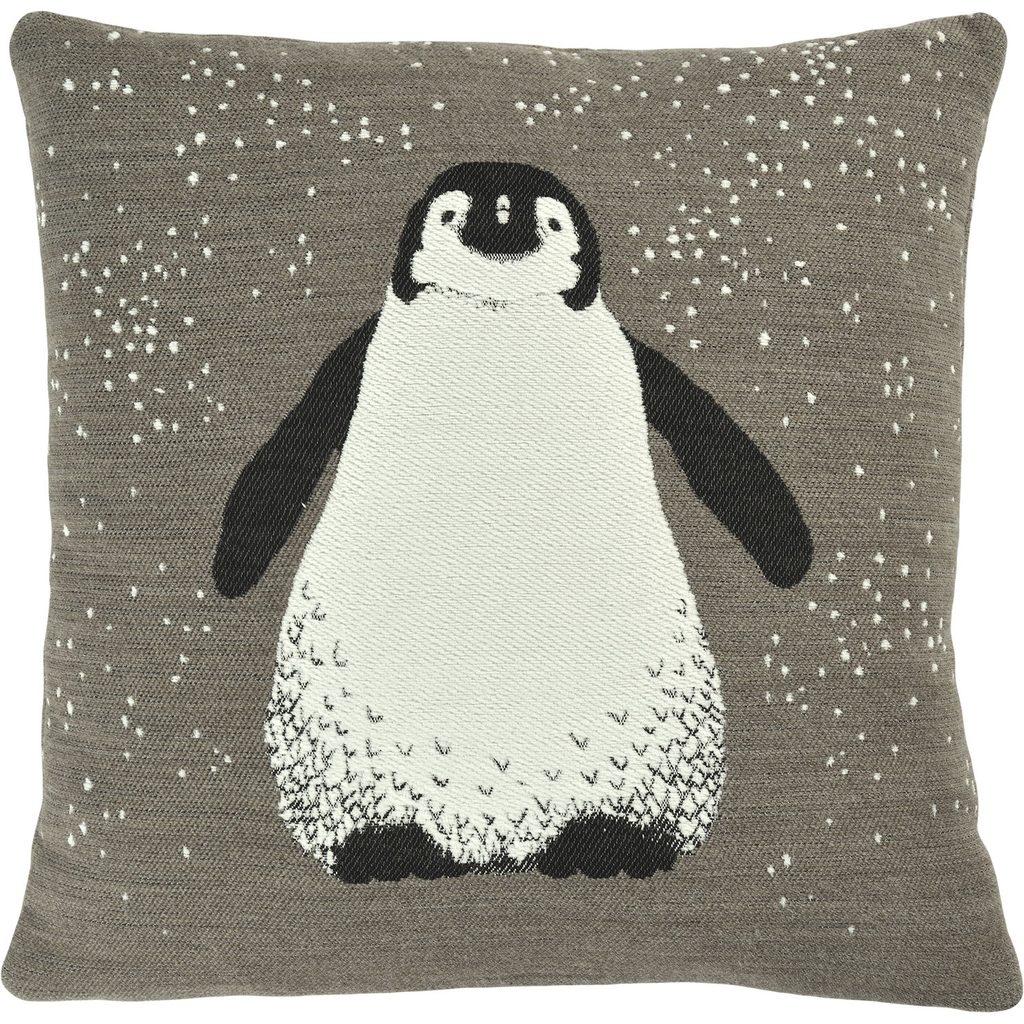 Dekoračná obliečka na vankúš Ping s motívom tučniaka na hnedom pozadí, ktorá vnesie do každého interiéru zimnú atmosféru a roztomilosť. Ideálne ako sezónny doplnok na vašu pohovku alebo kreslo.