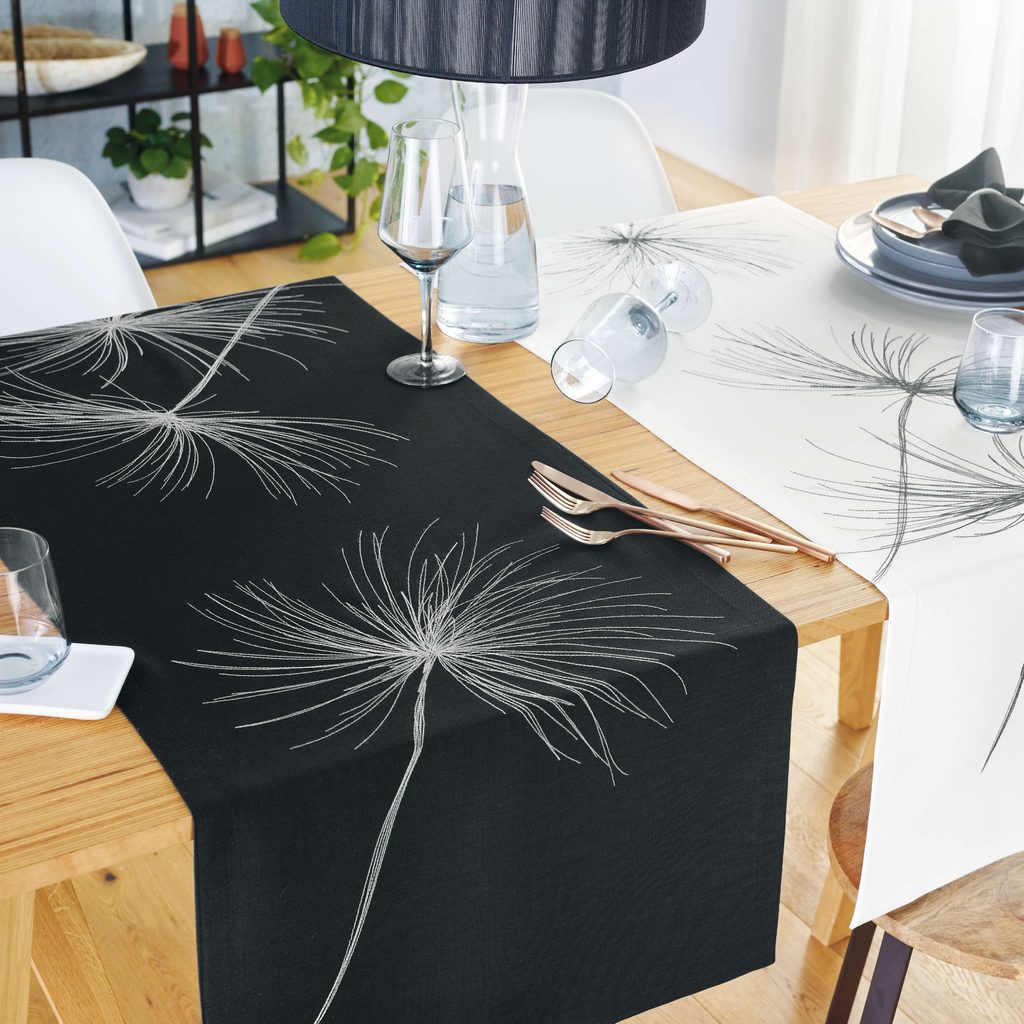 Biely obrus White Blow s decentným motívom púpav predstavuje kombináciu elegancie a jemnosti. Jeho nadčasový dizajn sa skvele hodí na slávnostné príležitosti, ale aj na každodenné stolovanie, ktorému dodá sviežosť a čistotu.