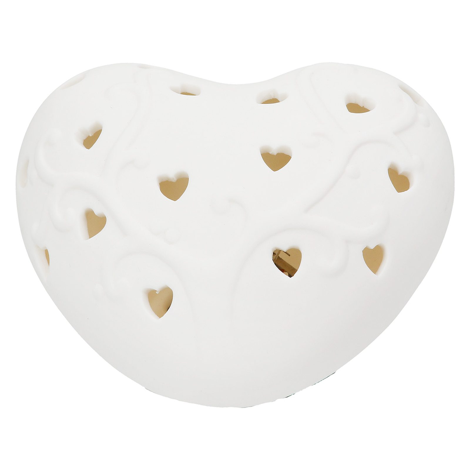 Porcelánová dekorace srdce s LED osvětlením bílé, 8,5x10x5 cm