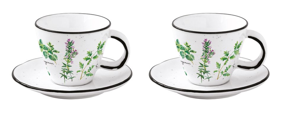 Porcelánová súprava dvoch šálok a podšálok na espresso z kolekcie Herbarium talianskej značky Easy Life prináša kúzlo bylinkovej záhrady priamo na váš stôl. S objemom 120 ml je ideálna na prípravu lahodnej kávy. Jemný motív byliniek v kombinácii s elegantnými čiernymi detailmi dodáva šálke nadčasový vzhľad. Balené v darčekovej krabičke - ideálny tip na darček!