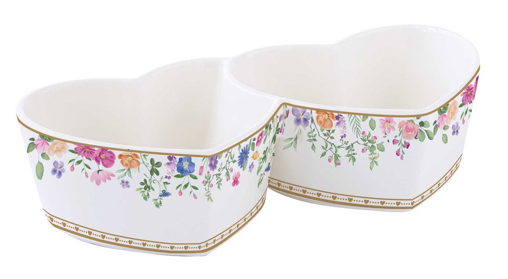 Elegantné porcelánové misky v tvare srdca z kolekcie Mon Amour od talianskej značky Easy Life vás očaria svojím romantickým dizajnom s kvetinovým motívom a jemnými zlatými detailmi. Ideálne na servírovanie pochúťok alebo dezertov. Balené v luxusnej darčekovej škatuľke.