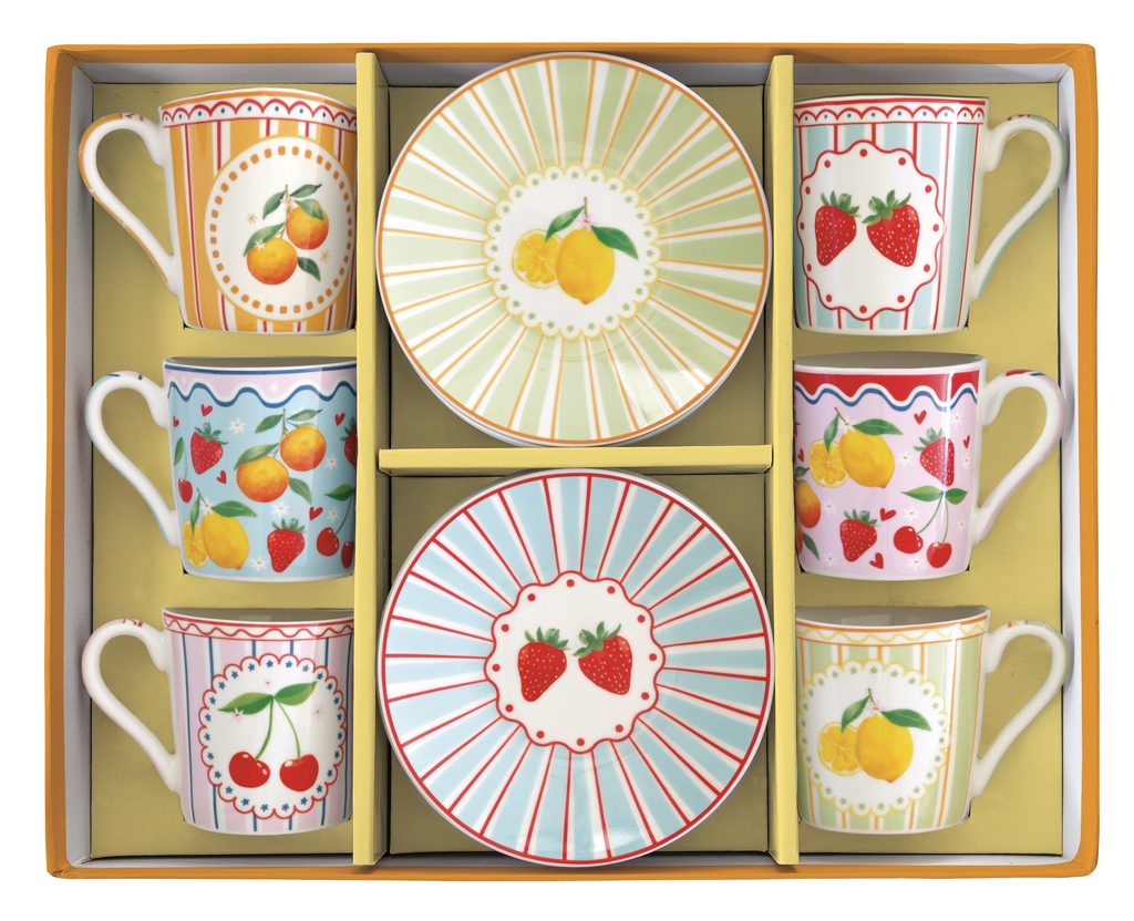 Porcelánové šálky s podšálky na espresso 6ks Fruit Mania 100ml, Easy Life