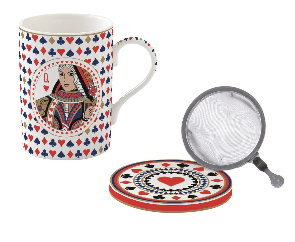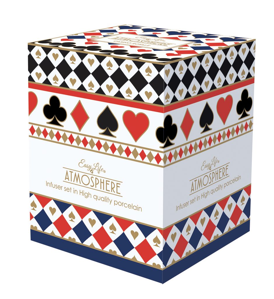 Porcelánový hrnček s viečkom a sitkom na sypaný čaj s objemom 350 ml z kolekcie Casino Royal od spoločnosti Easy Life. Hrnček s viečkom je zdobený motívmi kariet. Porcelánová čajová súprava sa stane praktickým doplnkom pri podávaní lahodného čaju a poteší aj vašich hostí pri víkendovej zábave.