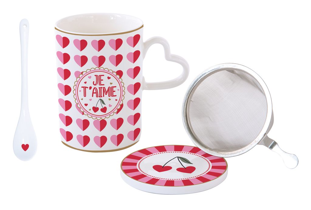 Porcelánový hrnek se sítkem a pokličkou na čaj Cuoricini 350ml, Easy Life
