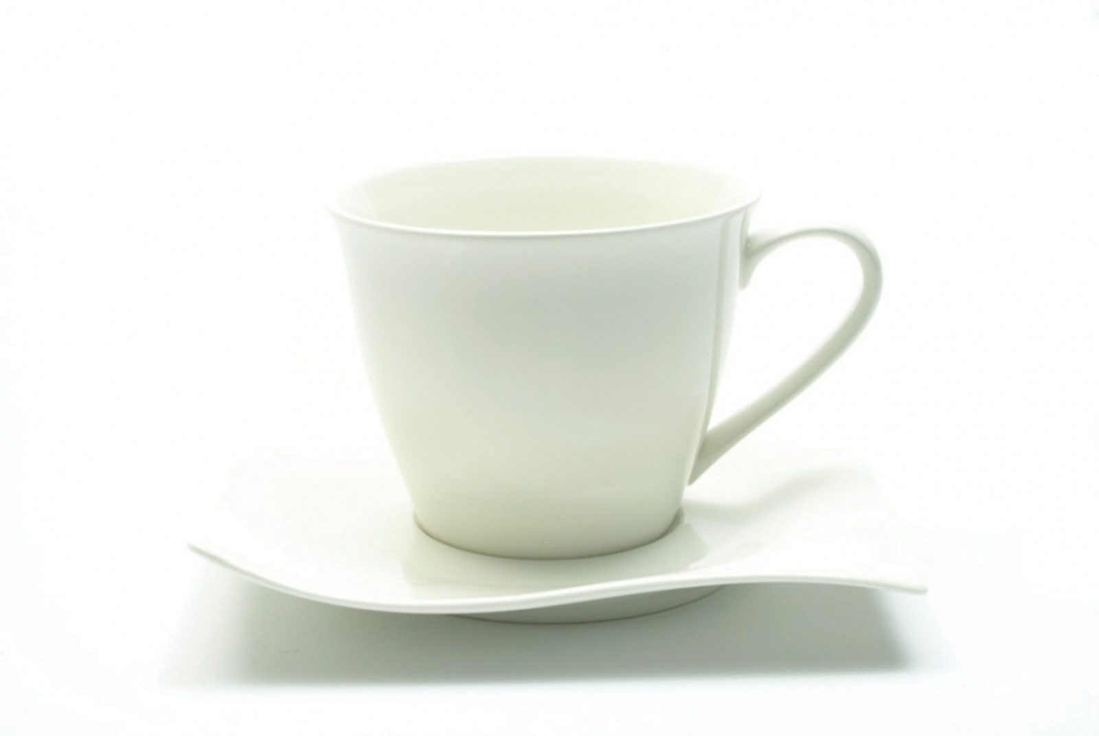 Porcelánový šál s tanierikom z kolekcie Motion od Maxwell and Williams. Atypický tvar porcelánu Motion dotvárajú dynamicky vlnovku do podoby vĺn.