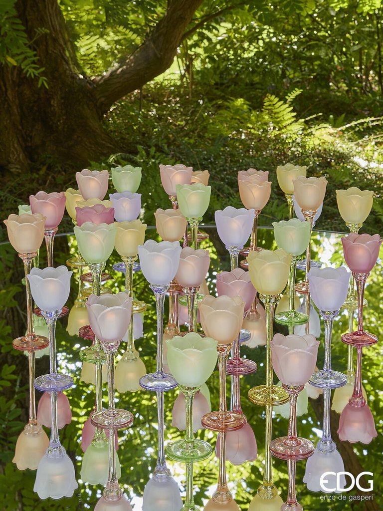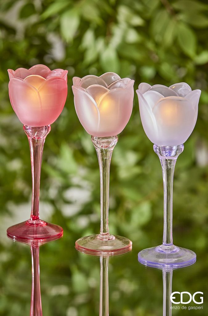 Sklenený svietnik na čajovú sviečku v tvare tulipánu 1ks, 22x8,5 cm