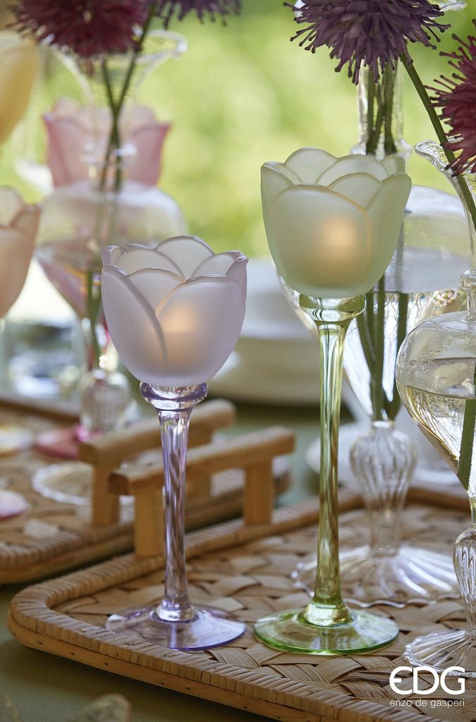 Sklenený svietnik na čajovú sviečku v tvare tulipánu 1ks, 19x8,5 cm