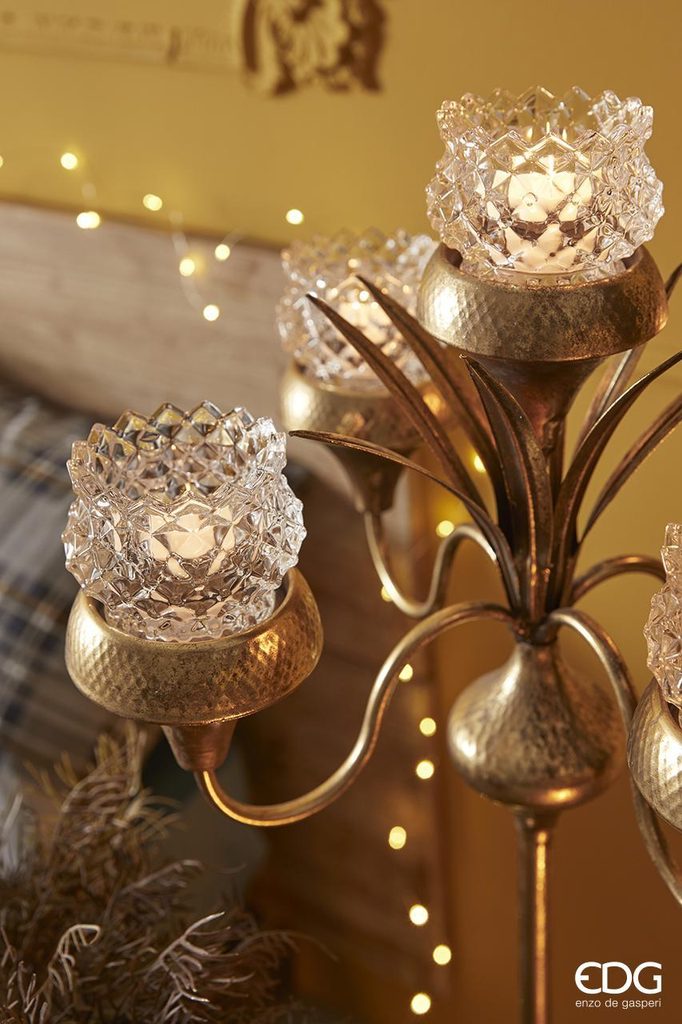 Luxusný sklenený svietnik na čajovú sviečku Bombato od talianskej značky EDG - Enzo De Gasperi. Elegantný číry dizajn s brúseným dekorom dodá interiéru sofistikovaný lesk.