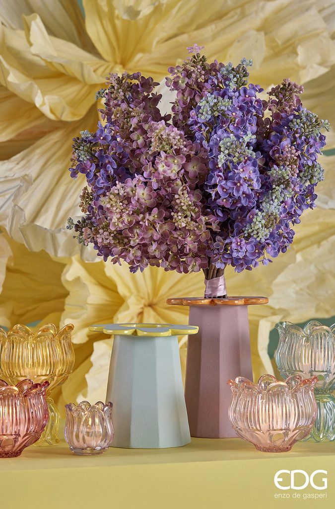 Je k dispozícii v štyroch elegantných farbách - ružovej, žltej, fialovej a svetlomodrej. Každý svietnik vyzerá na stole alebo komode ako malý šperk a vďaka plastickej štruktúre skla vytvára krásne odlesky svetla.