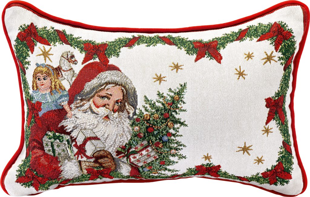 Vianočný obojstranný gobelínový vankúš z kolekcie Toy's Fantasy so Santa Clausom na jednej strane a motívom hračky na druhej strane. Perfektne doplní vašu obývačku alebo stoličky pri sviatočnom stole. Vankúš prinesie do vášho domova kúzlo Vianoc. Vankúš od spoločnosti Villeroy & Boch patrí medzi novinky roku 2024 a bude skvelým doplnkom vášho nábytku.