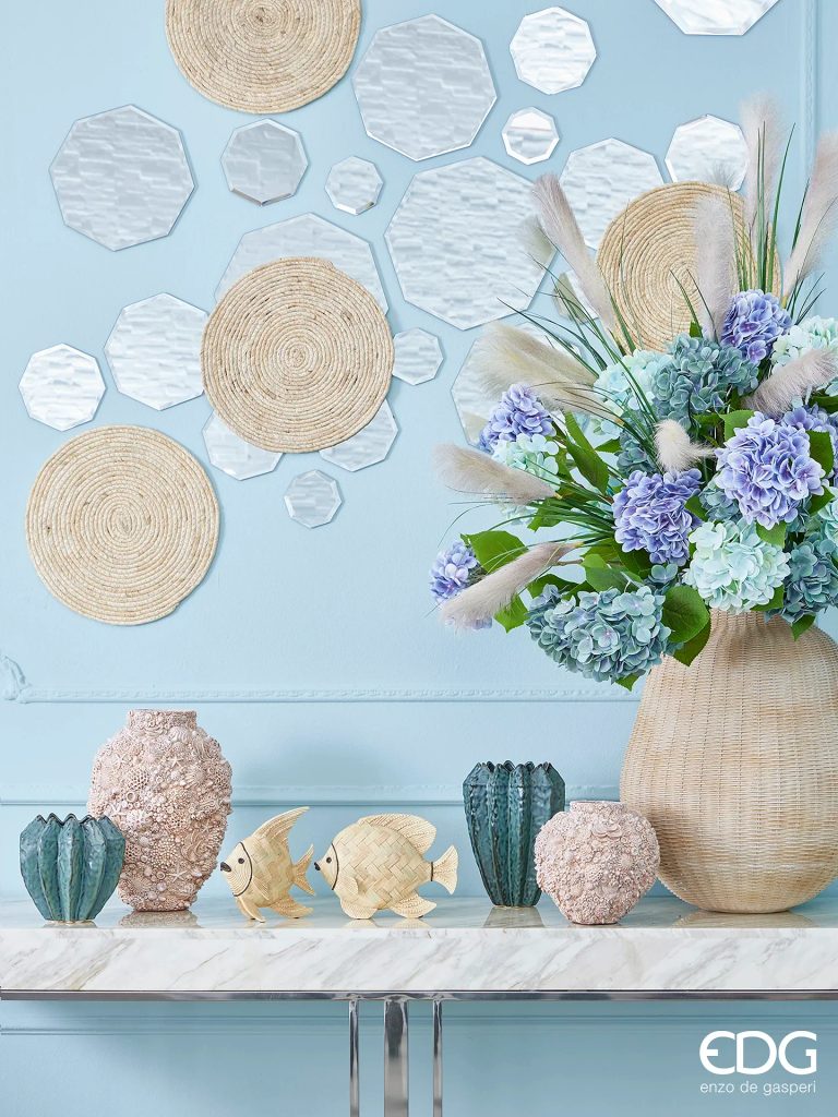 Elegantná umelá hortenzia od talianskej značky EDG s dĺžkou 60 cm je dokonalou dekoráciou do každého interiéru. Realistický dizajn s jemnými modrými kvetmi a prirodzene vyzerajúcimi listami dodá vášmu domovu nádych elegancie a sviežosti. Ideálne na aranžovanie, dekoráciu vázy alebo ako súčasť kvetinového aranžmánu.