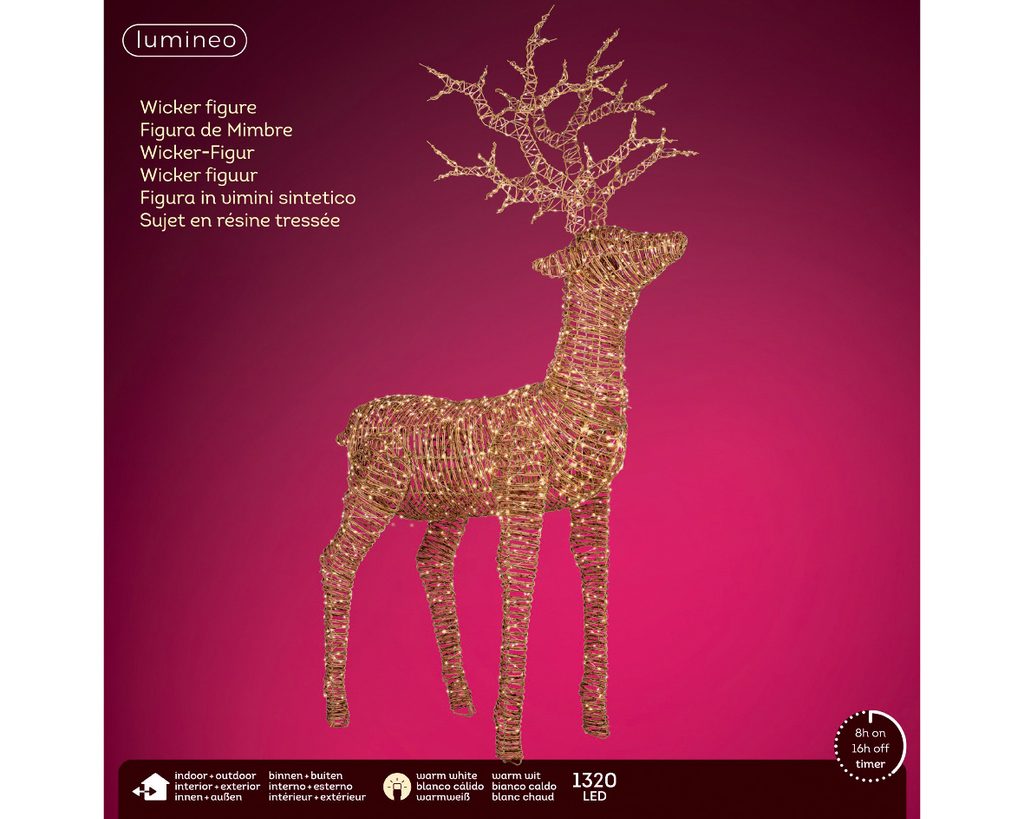 Vianočná nástenná dekorácia jeleň 300 LED, 75x60x30 cm