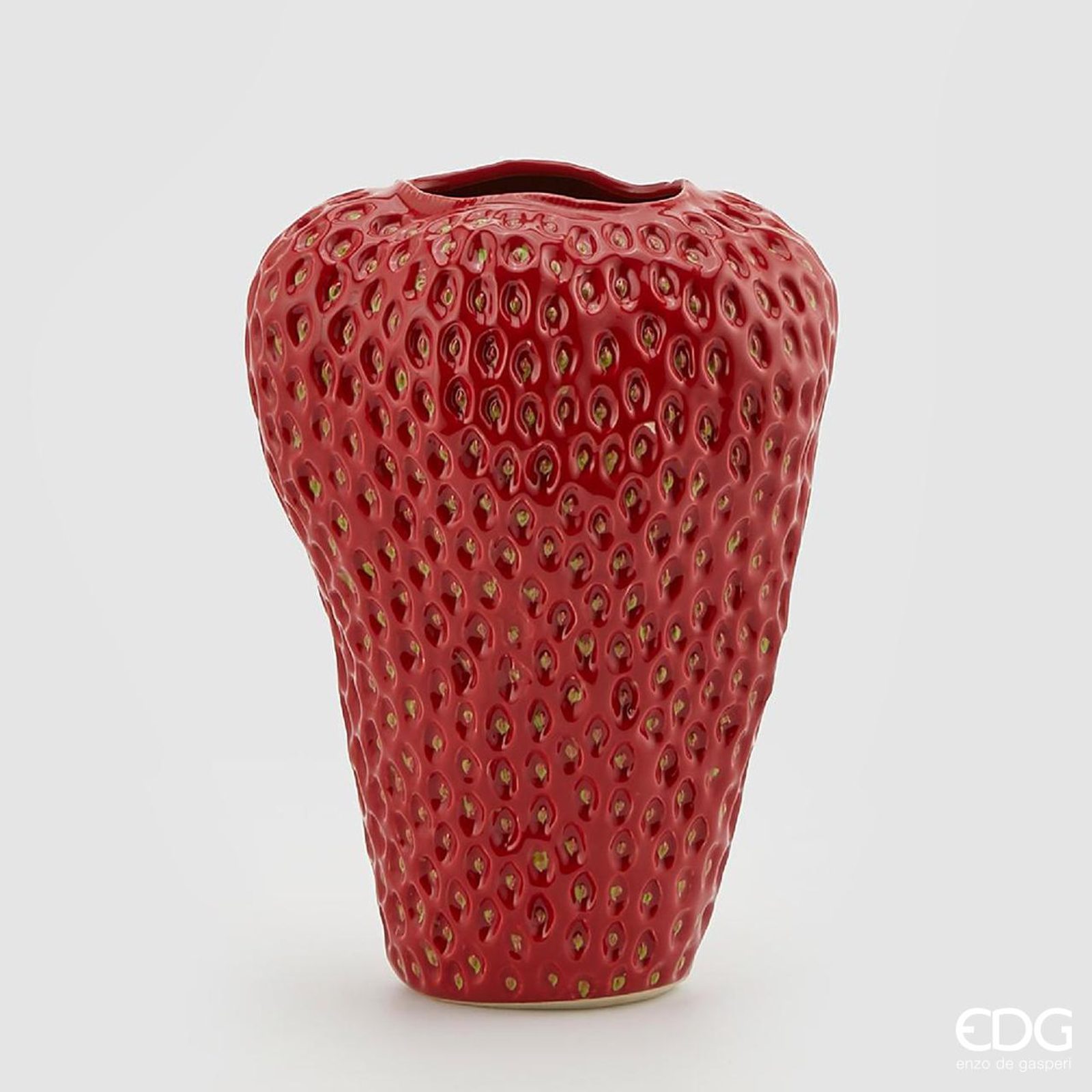 Originálna keramická váza v tvare jahody od prestížnej talianskej značky EDG. Výrazná červená farba a realistická štruktúra robia z tohto dekoratívneho prvku ozdobu každého interiéru. Rozmery 37 × 25 cm poskytujú dostatok priestoru na kvety aj ako samostatnú dekoráciu.
