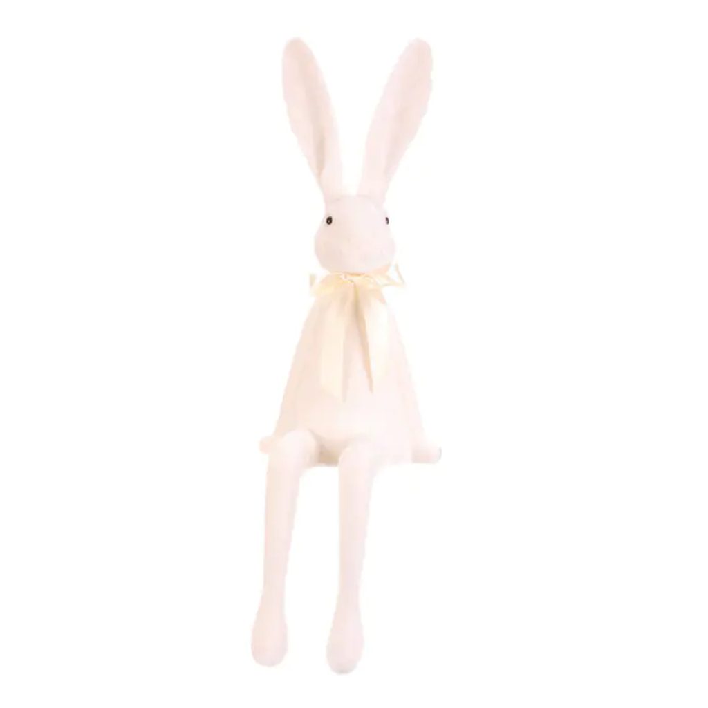 Velikonoční dekorace semišový zajíc s mašlí sedící bílý, 26x28x90 cm