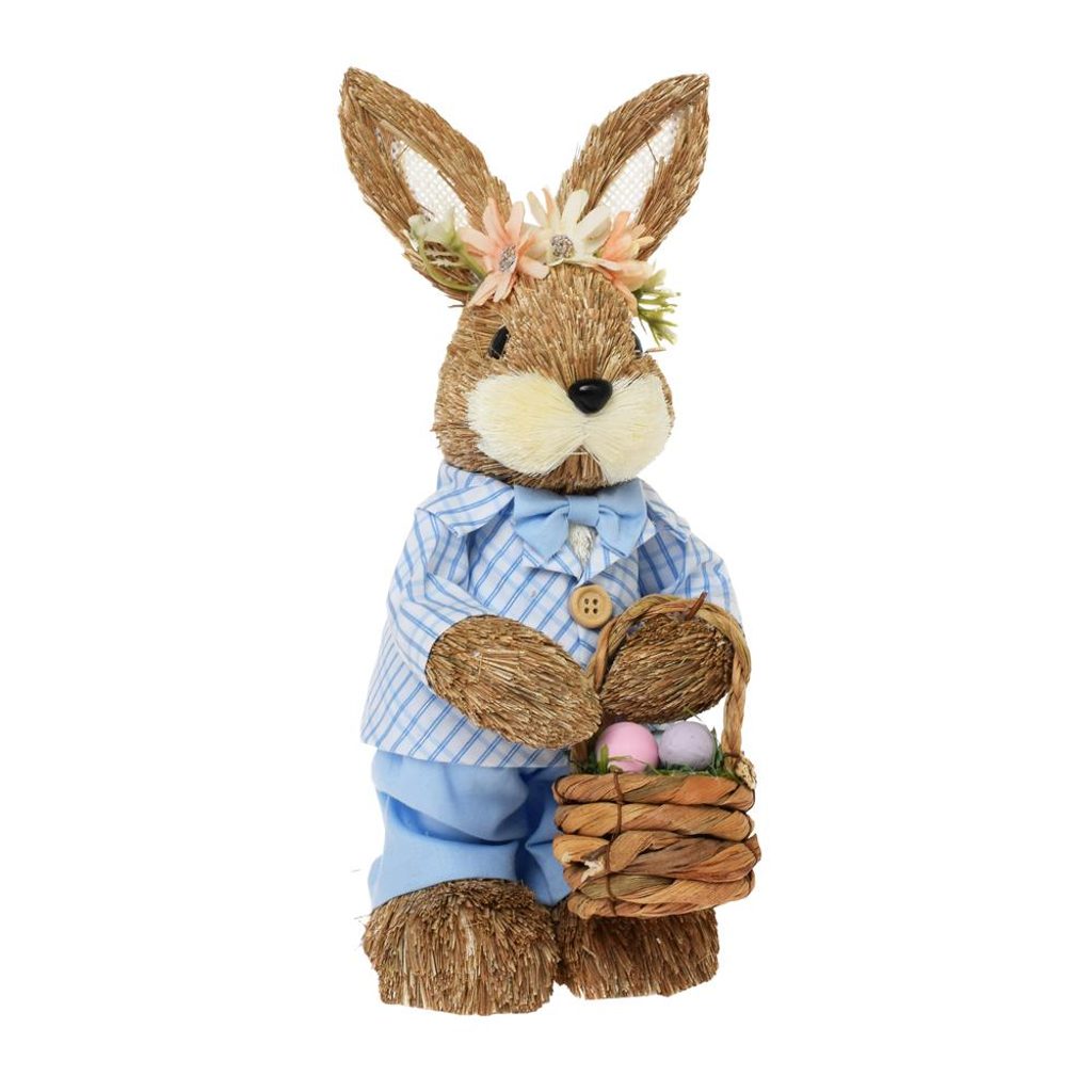 Velikonoční dekorace slaměný zajíc s košíkem, 11x14x29 cm