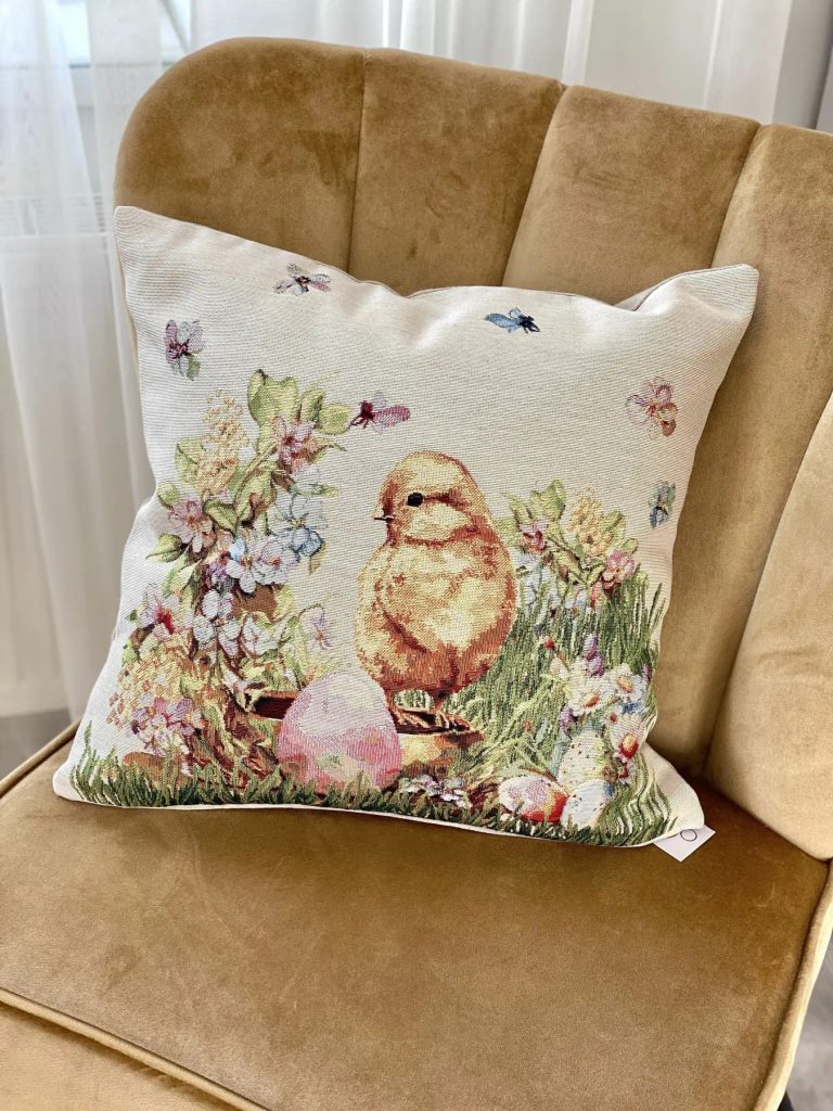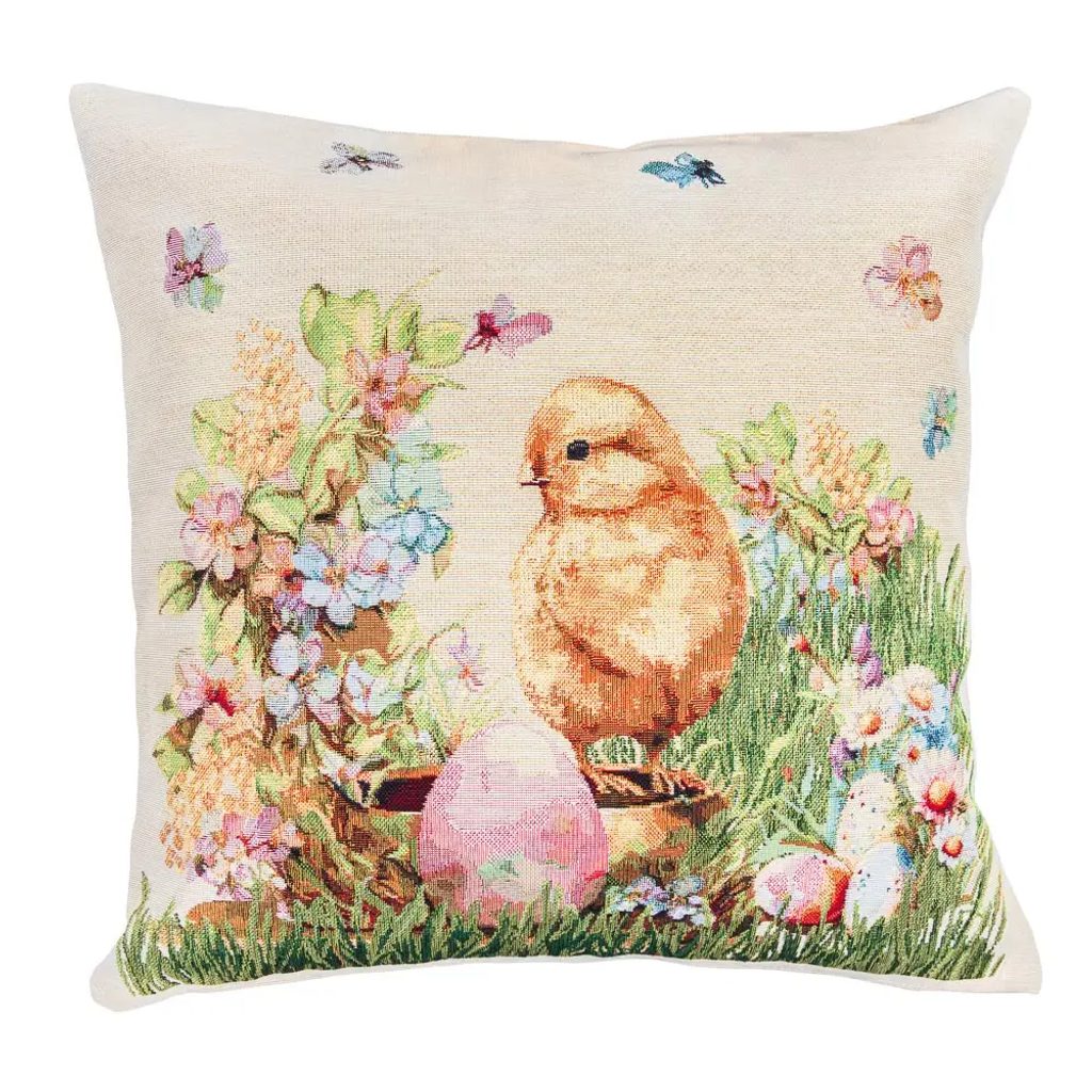 Velikonoční gobelínový potah na polštář s kuřátkem, 45x45cm