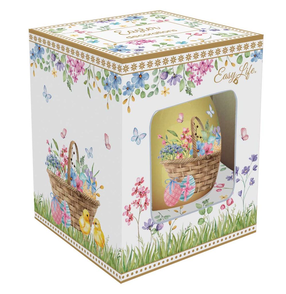 Keramické vajíčko na zavesenie z kolekcie Spring Bloom talianskej značky Easy Life. Jemné jarné motívy s kuriatkami, vtáčikmi a veľkonočnými dekoráciami v pastelových tónoch. Ideálne na ozdobenie veľkonočného stromčeka, vetvičiek alebo interiéru. Dodáva sa v elegantnej darčekovej škatuľke - ideálny tip na darček.