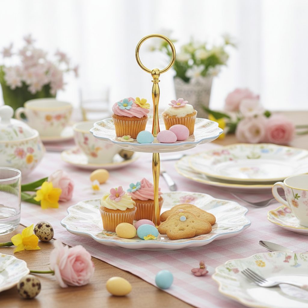 Veľkonočný dvojposchodový etažér Tres Jolie Ø 21/16 cm od značky Easy Life je porcelánový servírovací stojan s motívom zajačika a jemných pastelových kvetov. Elegantná zlatá rukoväť a romantický dizajn z neho robia neprehliadnuteľný doplnok veľkonočného stola. Dodávaný v darčekovej krabičke.