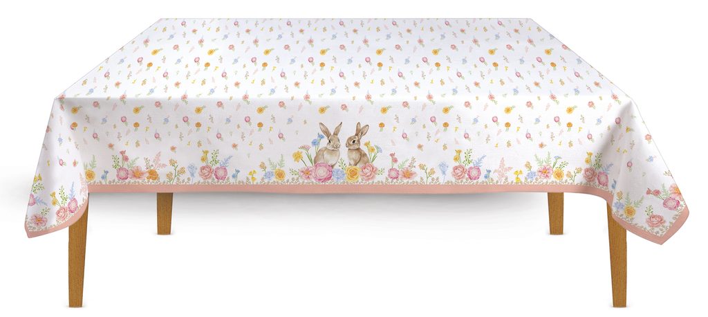 Bavlnený veľkonočný obrus Tres Jolie 250 × 145 cm od značky Easy Life s motívom zajačikov a pastelových kvetov dodá vášmu stolu sviežu jarnú eleganciu. Štýlový a zároveň praktický doplnok na slávnostné veľkonočné stolovanie.