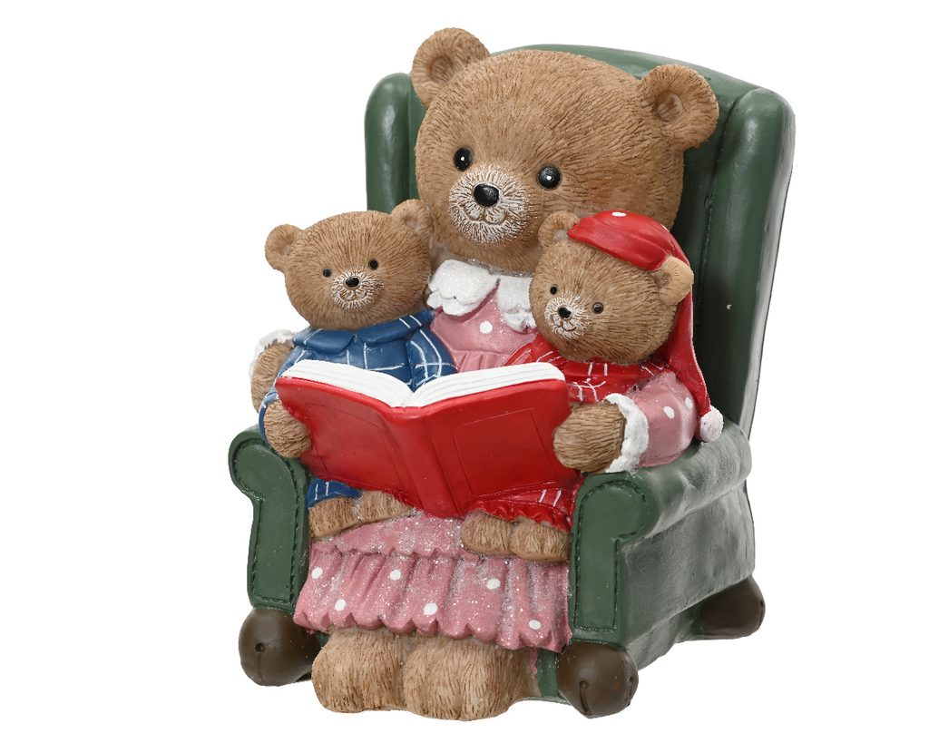 Vianočná dekorácia medvedíky v kresle s knihou, 13x14x17 cm