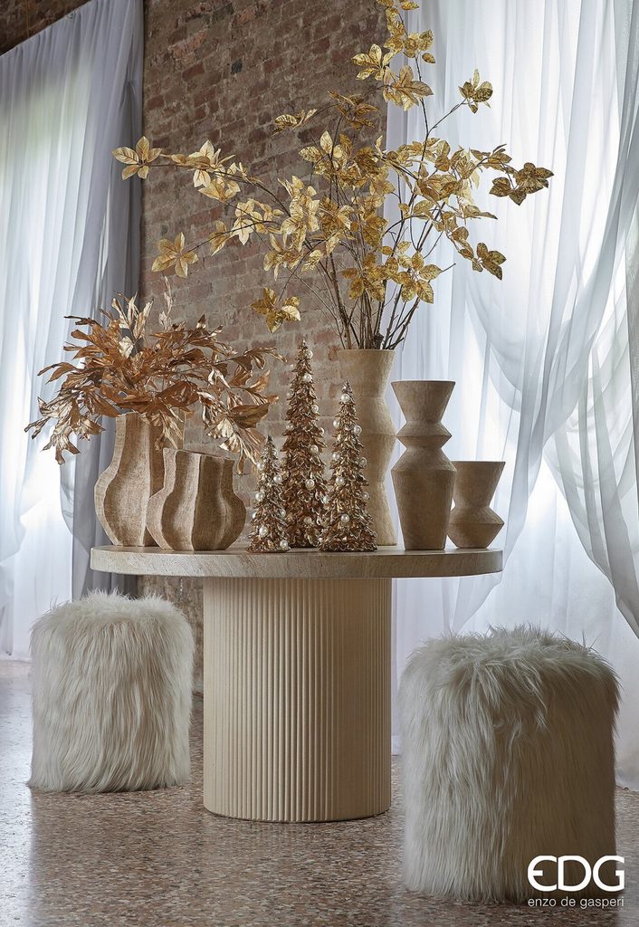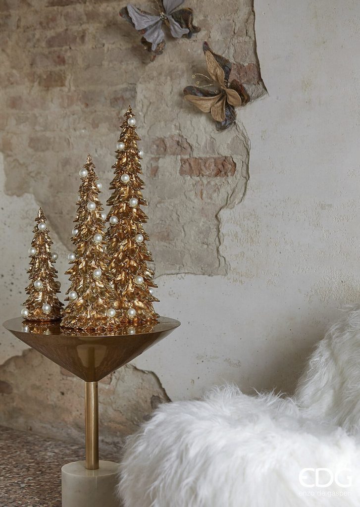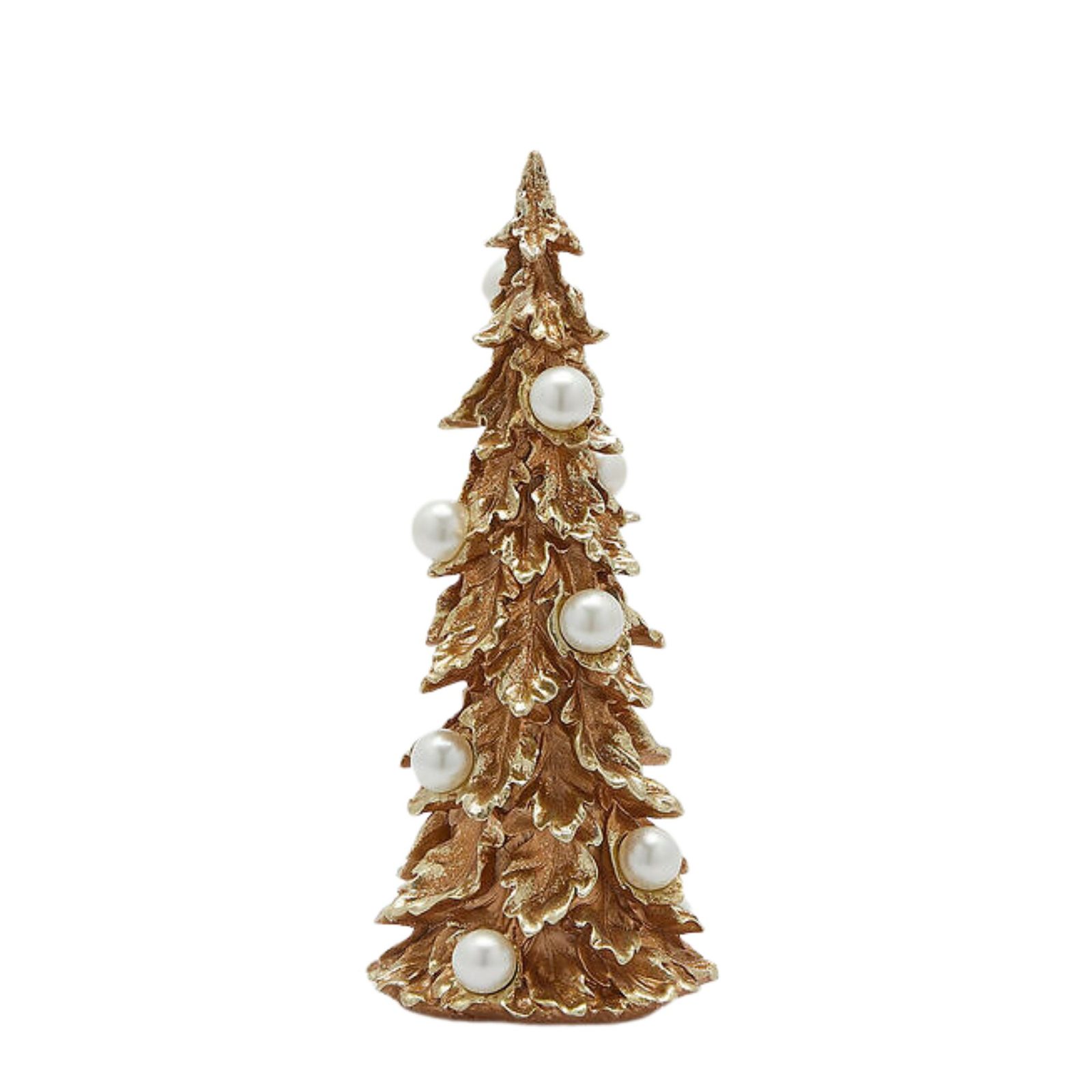 Zlatý vianočný stromček s perlami je stelesnením elegancie a pokoja počas Vianoc. Každý detail - od lesklého povrchu až po jemne osadené perly - rozpráva príbeh luxusu, krásy a sviatočného kúzla. Tento stromček sa stane neprehliadnuteľným doplnkom vášho domova, ktorý rozžiari interiér a sviatočnú náladu. Postavte ho na stôl, komodu alebo parapet a nechajte ho zažiariť v teple vianočných svetiel.