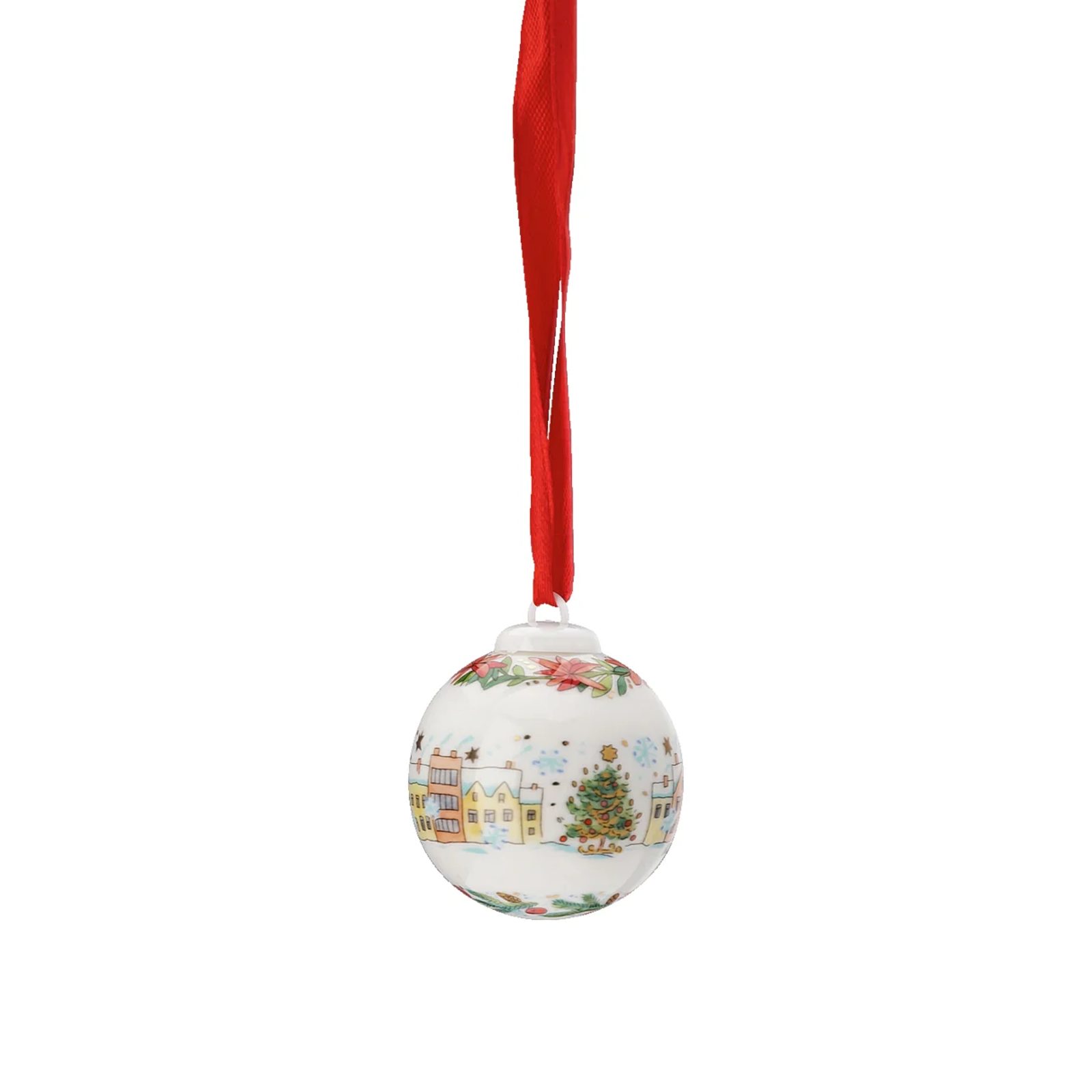 Vianočná porcelánová ozdoba v tvare gule s priemerom 4,5 cm ozdobí váš stromček. Guľa na červenej stuhe je súčasťou výročnej kolekcie Vianočné zvuky 2023, ktorú pre porcelánku Rosenthal Hutschenreuther ilustrovala česká výtvarníčka Renata Fučíková. Táto 6. kolekcia je skvelým doplnkom k vašej predchádzajúcej zbierke.