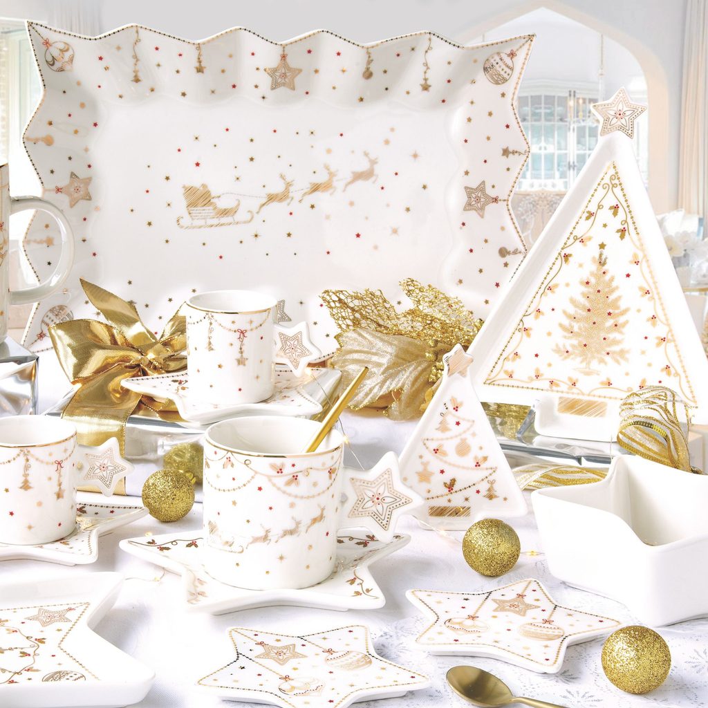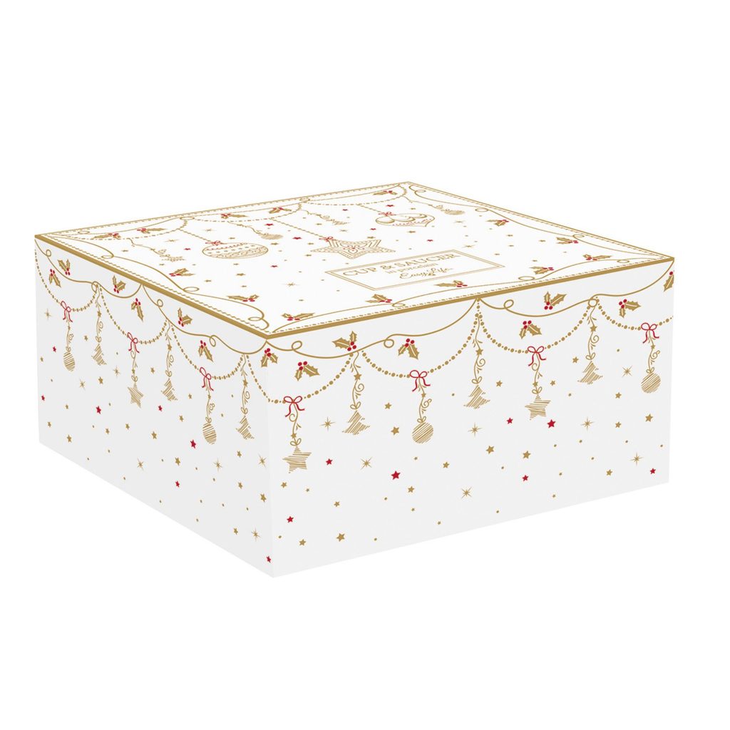 Elegantná vianočná porcelánová šálka a podšálka Christmas Lights od talianskej značky Easy Life prináša kúzlo Vianoc priamo na váš stôl. Jemný zlatý dekor s motívmi hviezdičiek a vianočných ozdôb, zabalený v luxusnej darčekovej škatuľke, je ideálny pre sviatočné chvíle a ako originálny darček.