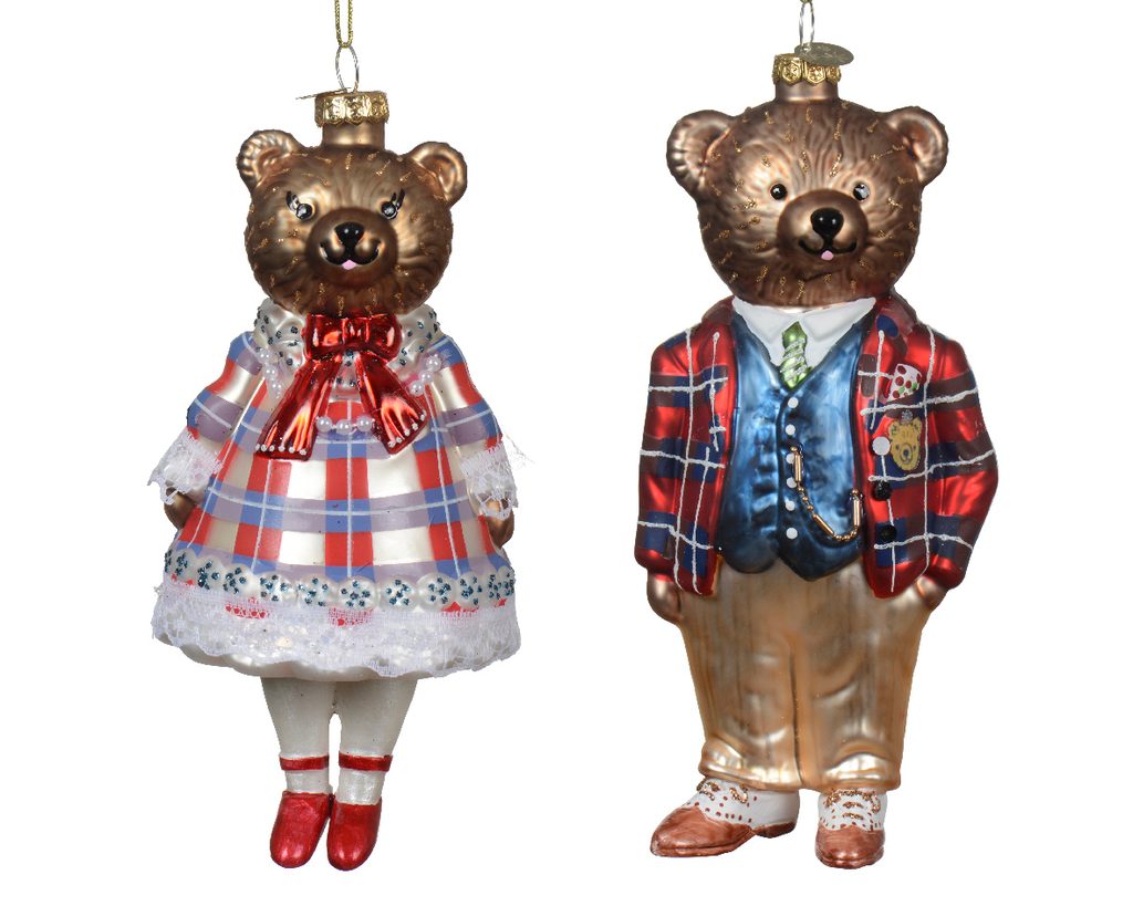 Vianočná sklenená ozdoba medvedík 1ks, 16 cm