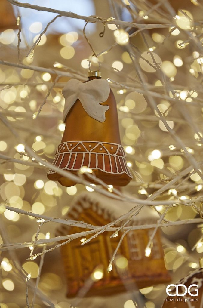 Tieto krásne vianočné zvončeky vnesú do vašich dekorácií čaro tradície a elegancie. Matný povrch v zlatých tónoch dopĺňa jemná biela mašľa a detailné ozdoby v štýle perníkov, ktoré dodávajú ozdobám hravý a zároveň sofistikovaný vzhľad.