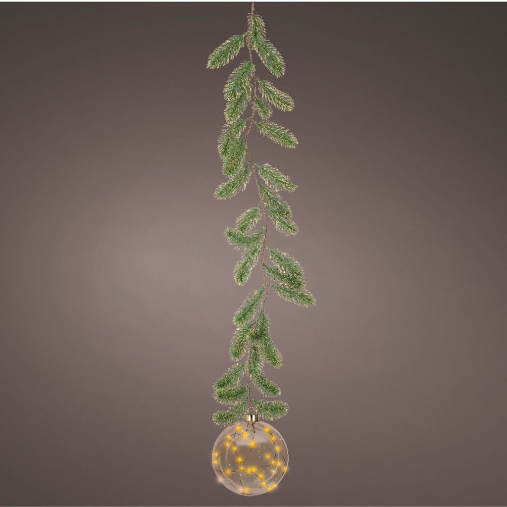 Vianočná závesná guľa so svetlami LED a vetvičkami vytvorí čarovnú sviatočnú atmosféru kdekoľvek v interiéri. Elegantná sklenená dekorácia s jemnými svetlami v teplých farbách a prírodnou vetvičkou je ideálna na okná, steny, schodiská alebo kryté terasy.