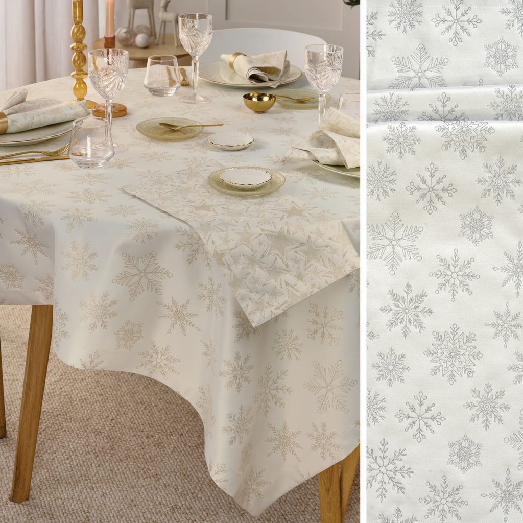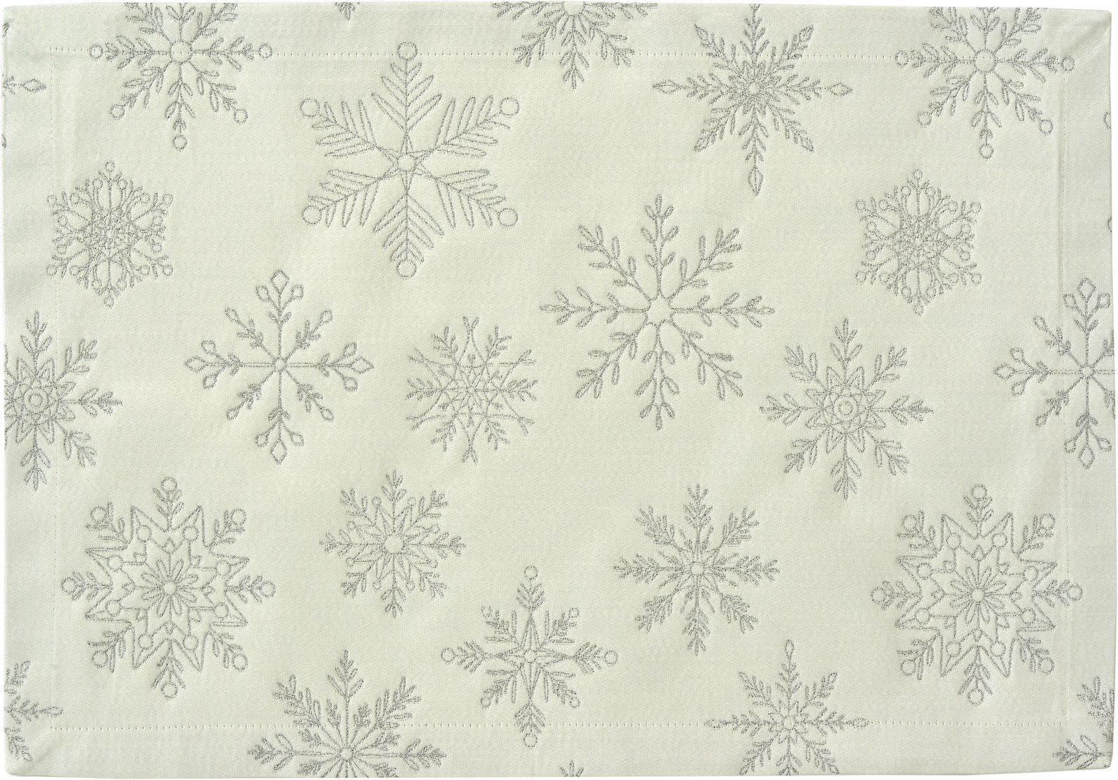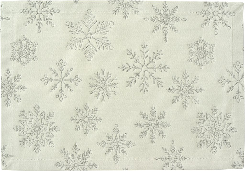 Elegantné vianočné prestieranie Cristallo Luce bielo-strieborné 35x50 cm od značky Sander table&home. Vyrobené v Nemecku z kvalitného žakára, zdobené striebornou výšivkou snehových vločiek s jemným lesklým efektom. Dokonalý detail na slávnostné vianočné stolovanie.