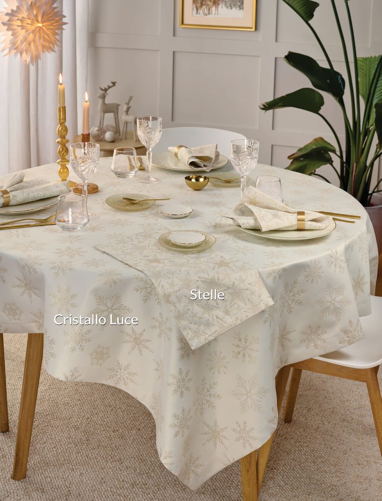 Exkluzívny vianočný behúň na stôl Cristallo Luce bielo-strieborný 40x100 cm od Sander table&home. Vyrobený v Nemecku z kvalitného žakárového materiálu, zdobený striebornou výšivkou snehových vločiek s jemným trblietavým efektom. Elegantný doplnok pre vaše sviatočné stolovanie.