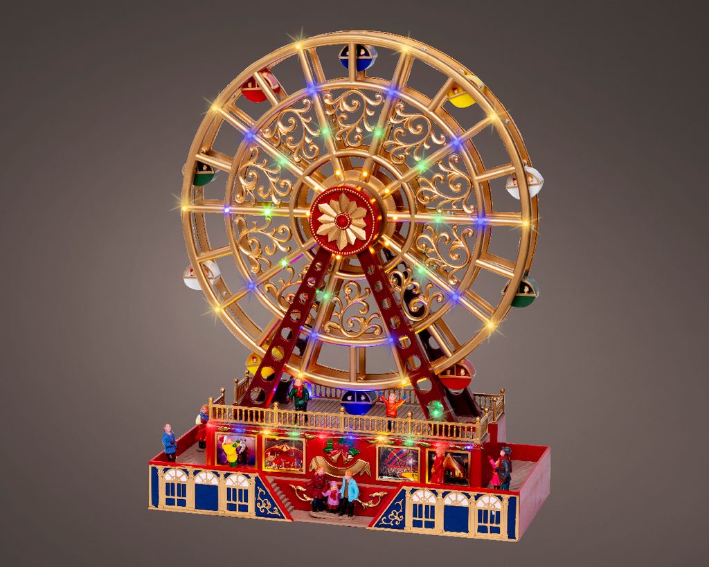 Veľkolepá vianočná dekorácia v podobe zlatého ruského kolesa so 60 LED svetlami a pohyblivými prvkami rozžiari váš domov. Veľkolepé blikajúce svetlá vytvárajú atmosféru slávnostného karnevalu - bez zvuku, len so svetlami a pohybom.