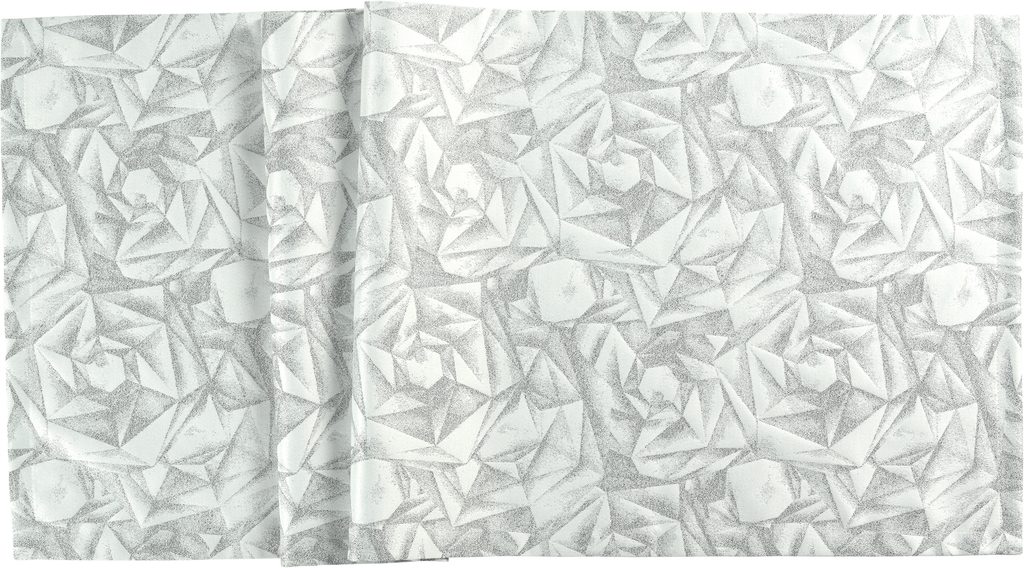 Luxusný vianočný obrus Diamanti s geometrickým kosoštvorcovým vzorom dodá vášmu stolu moderný a elegantný vzhľad. Vylepšite vzhľad svojho sviatočného stola obrusom na stôl v striebornej farbe a užite si sviatočné stolovanie.