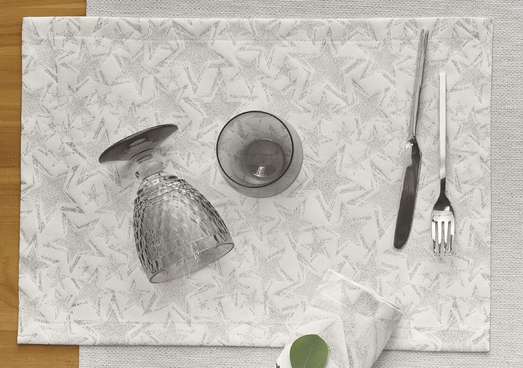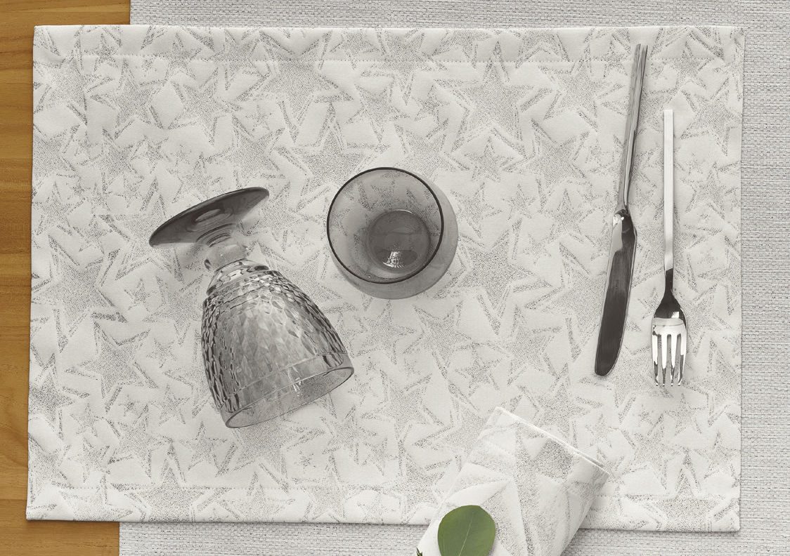 Oživte svoj slávnostný stôl obrusom Stelle so vzorom hviezd, ktorý dodá vášmu stolu moderný a elegantný vzhľad. Vylepšite vzhľad svojho vianočného stola obrusom v striebornej farbe a užite si slávnostné stolovanie.