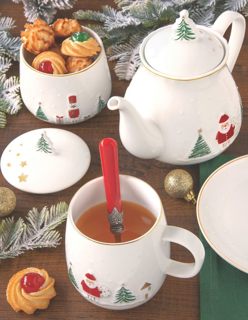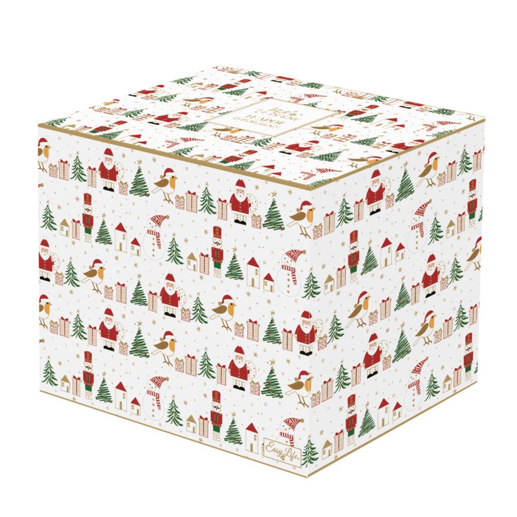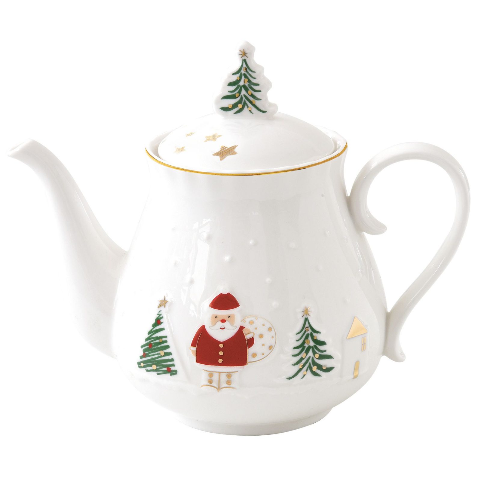 Vianočná porcelánová kanvica Let it Snow od talianskej značky Easy Life - objem 850 ml. Jemný reliéfny dekor so Santom, vianočnými stromčekmi a zlatými hviezdičkami. Pokrievka so zástavkou v tvare stromčeka. Balené v darčekovej škatuľke.