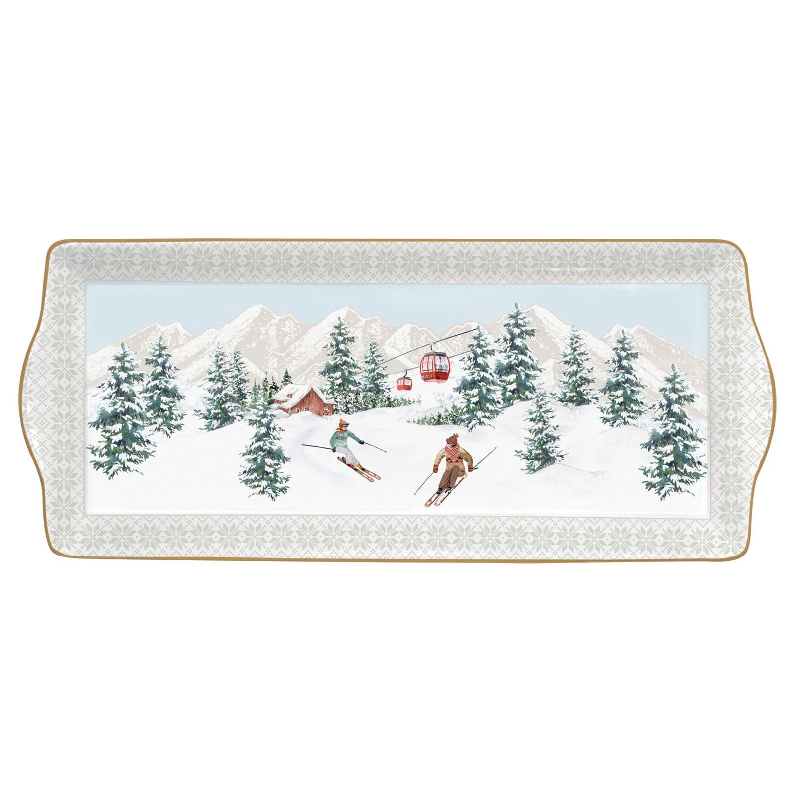 Elegantný vianočný porcelánový podnos Chalet 35 × 15 cm od talianskej značky Easy Life prinesie na váš stôl kúzlo zimných hôr. Je ideálny na sladkosti, pochutiny alebo vianočné dobroty a dodáva sa v krásnej darčekovej škatuľke.