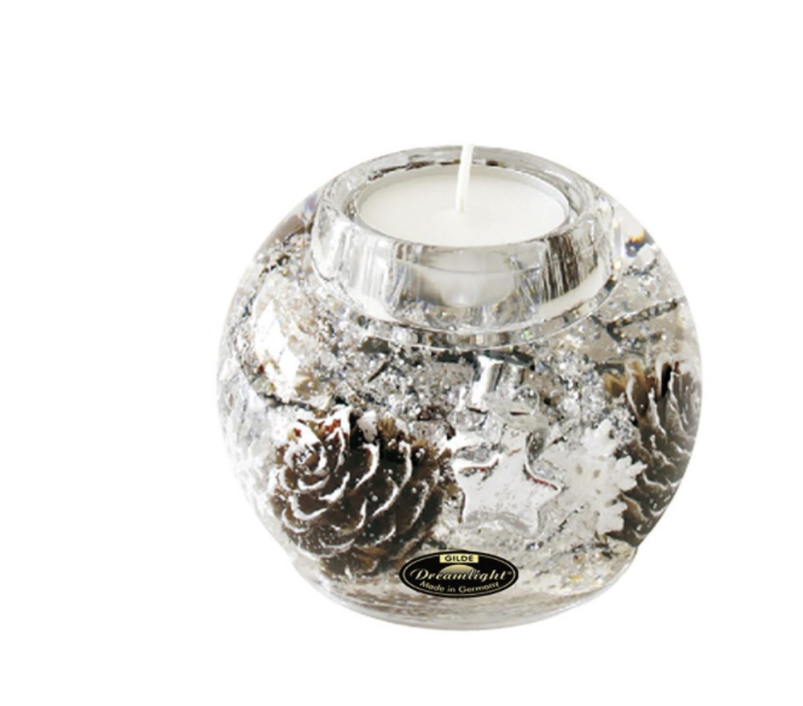 Krásny sklenený svietnik ručne vyplnený dekorom šišiek, trblietavých hviezd a vetvičiek, týmto kúskom potešíte každého, je tiež krásnou dekoráciou do interiéru.