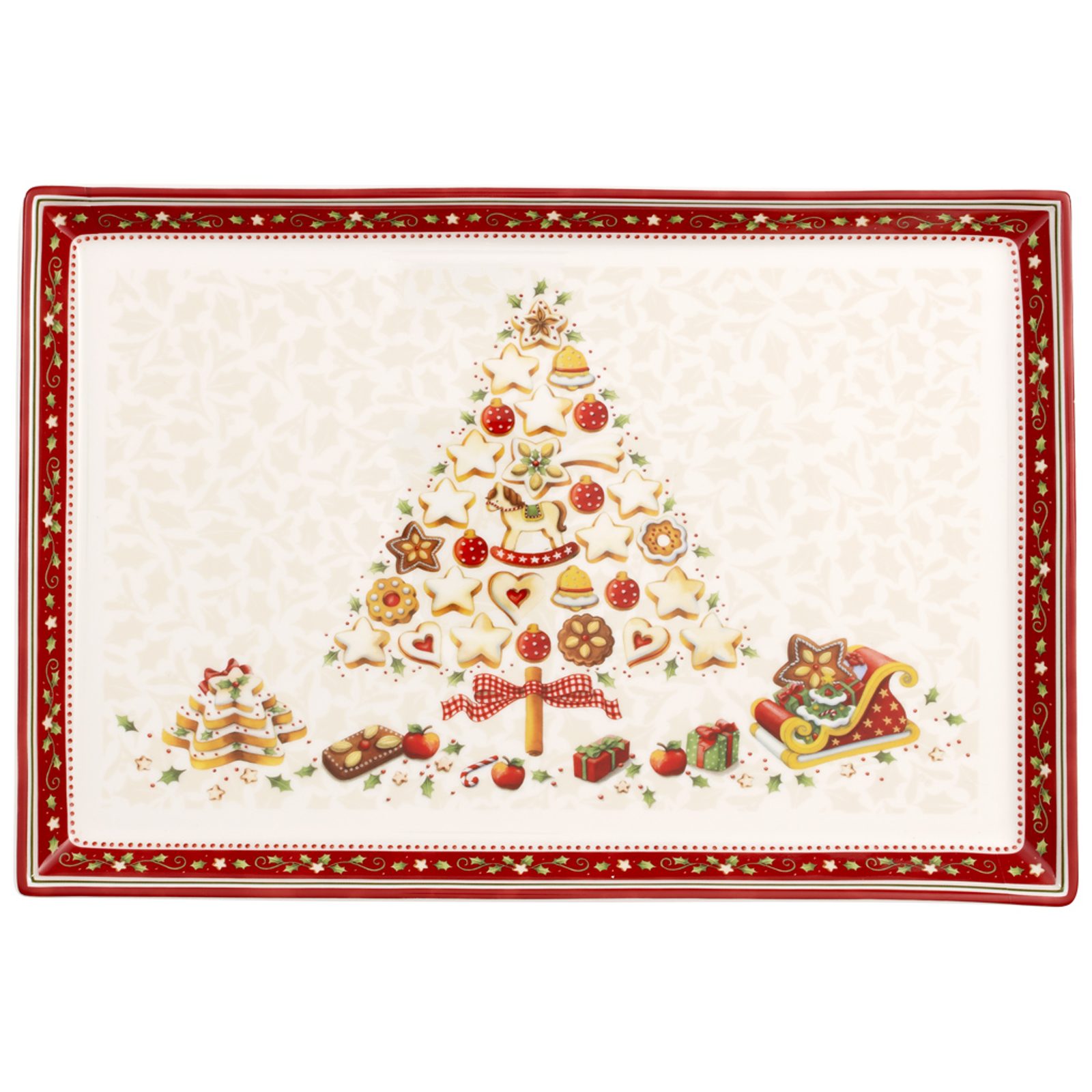 Hranatý podnos na tortu alebo krásnu zapletanie vianočku s rozmermi 39 x 26,5 cm z vianočnej kolekcie Winter Bakery Delight nemeckej porcelánky Villeroy & Boch.